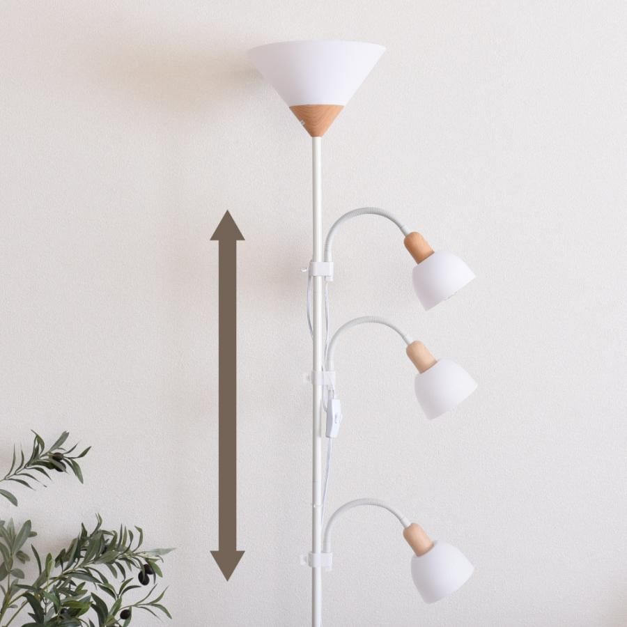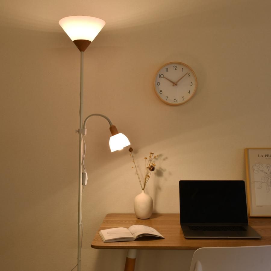 本体はシンプルながらも、こだわりの木目調デザインで温かみのある木目を基調としたアクセントがあるフロアスタンドライトPois。温もりに加え、インテリアとしてお部屋に馴染みやすくホワイト/ブラックの2カラーからお好きな色をお選びいただけます。高さ調節ができるスタンドライトで、お好みの高さに自由にカスタマイズができます。ソファ横の間接照明としてはもちろん、デスク上の照明としてもご使用いただけます。サブライトは上下に位置を移動させることができ、照らす場所も上下左右に細かく照射角度の調整ができるので照らしたいところをピンポイントで明るくすることができます。電源スイッチはプッシュスイッチを搭載しており、簡単に点灯切替ができます。調光調色機能付き電球対応でお好みの明るさに替えて様々なシーンで活用できるフロアスタンドライトです。