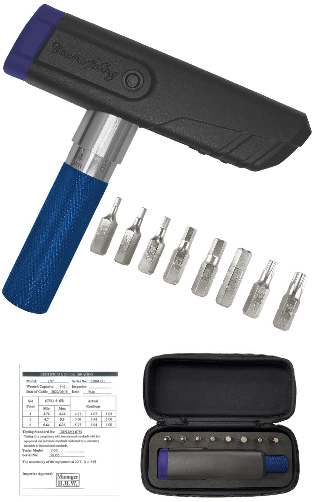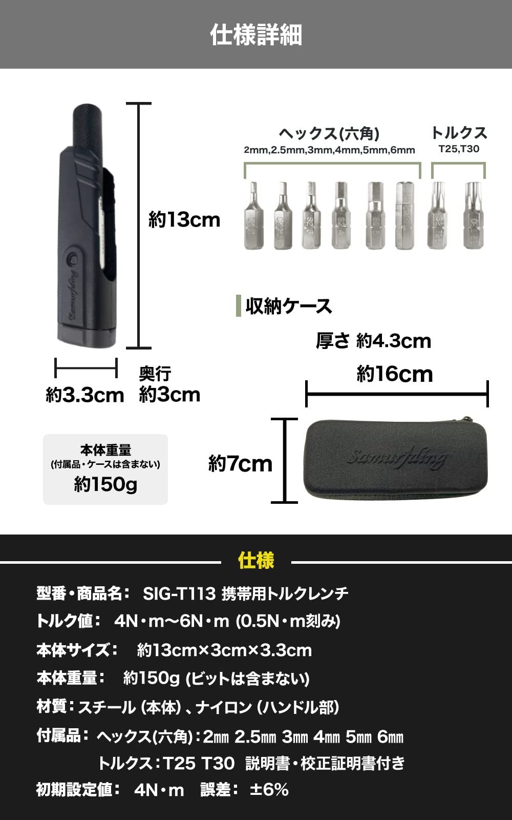 ???♂?【高品質な台湾製】ロードバイク トルクレンチ 6.3mm 1/4 自転車 携帯用 SIG-T113 トルク対応値:4N・m~6N・m(0.5N・m刻み) 付属品:2㎜ 2.5㎜ 3㎜ 4㎜ 5㎜ 6㎜ヘックス、T25 T30トルクス、ケース、取扱説明書、校正証明書