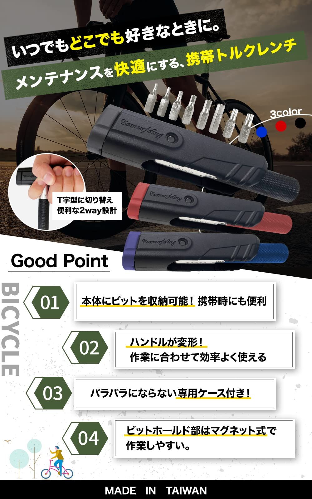 【台湾製・携帯用】Samuriding トルクレンチ ロードバイク 6.35mm (1/4インチ) 自転車 4-6N・m 小型ケース付き SIG-T113