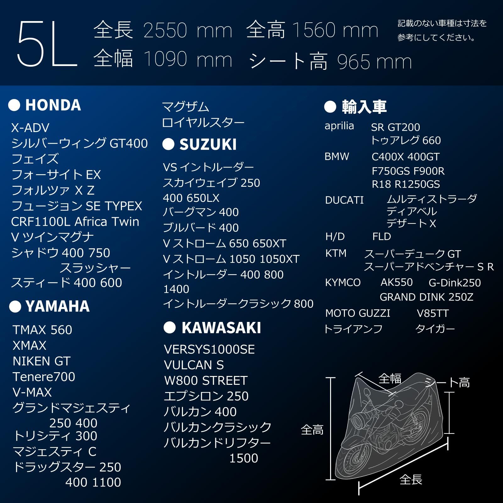 NANAHAN(ナナハン)バイクカバー 300D厚手 「ストームガードベルト」搭載 防水 撥水 防風 盗難防止穴対応 50cc 125cc 250cc 400cc 大型 5L ブラック