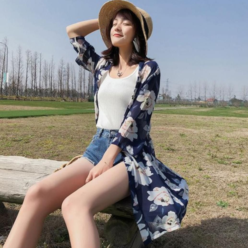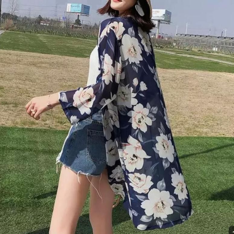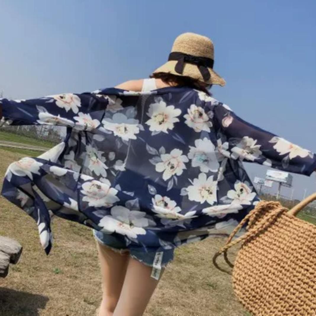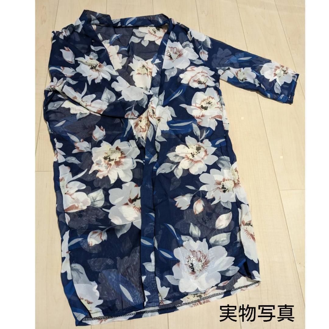 フリーサイズ ゆったり オーバーサイズ 体型カバー 花柄 ブラウス カジュアル 綺麗め キレイ 大人ブラウス 大人可愛い かっこいい 柄シャツ ネイビー とろみ シフォン クール レディース インポート シースルー 韓国ファッション 518