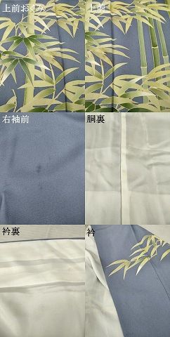状態は接写画像のように上前・上前おくみ・衿裏・胴裏にシミ、右袖前・衿に薄い汚れがございますが