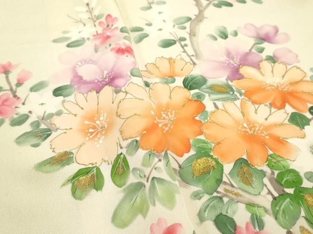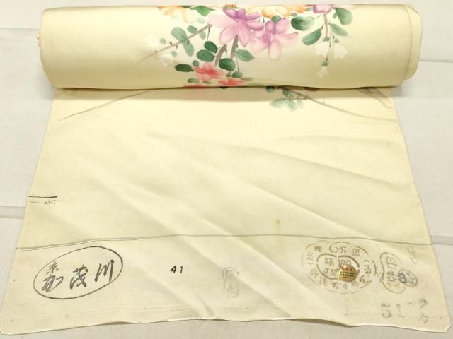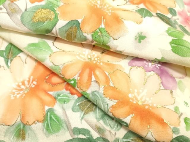平和屋着物▼付下げ 反物 着尺 手描き 枝花文 暈し染め 金彩 逸品 未使用 DAAY7484zy