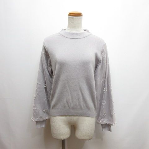 【商品名】マジェスティックレゴン MAJESTIC LEGON 刺繍レース袖 ニット カットソー M グレー パールビジュー装飾 長袖