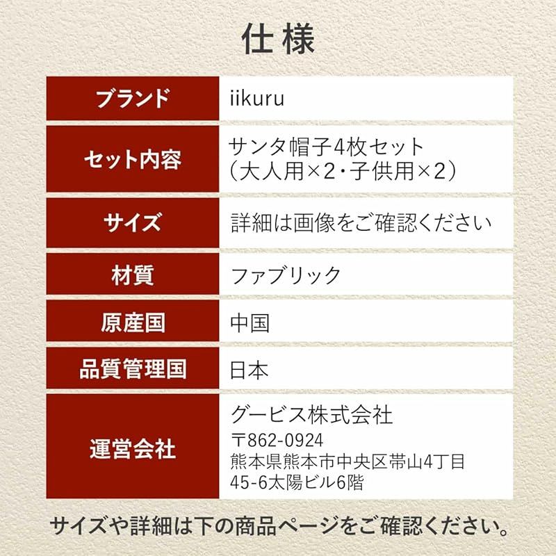 商品名:【新品】 [イイクル] サンタ 帽子 親子 4点セット 大人 子供 クリスマス コスプレ パーティー グッズ ぺア
