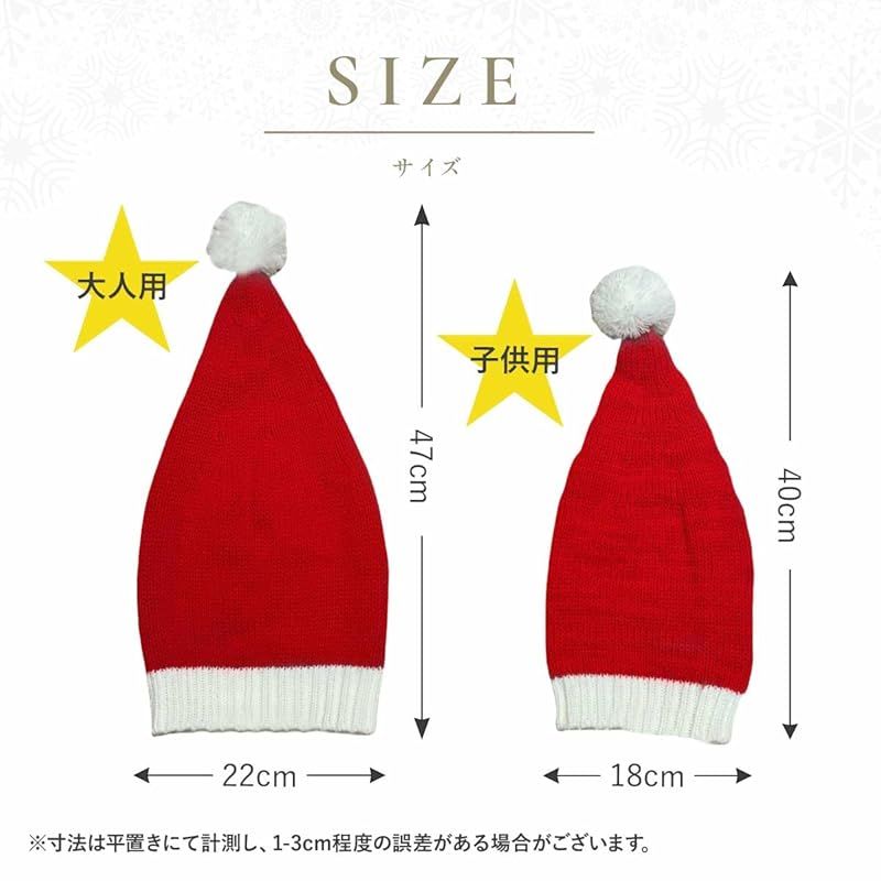 親子ペアのセットだから、家族で楽しむクリスマスに最適。おそろいの帽子で写真を撮れば、一生の思い出に。