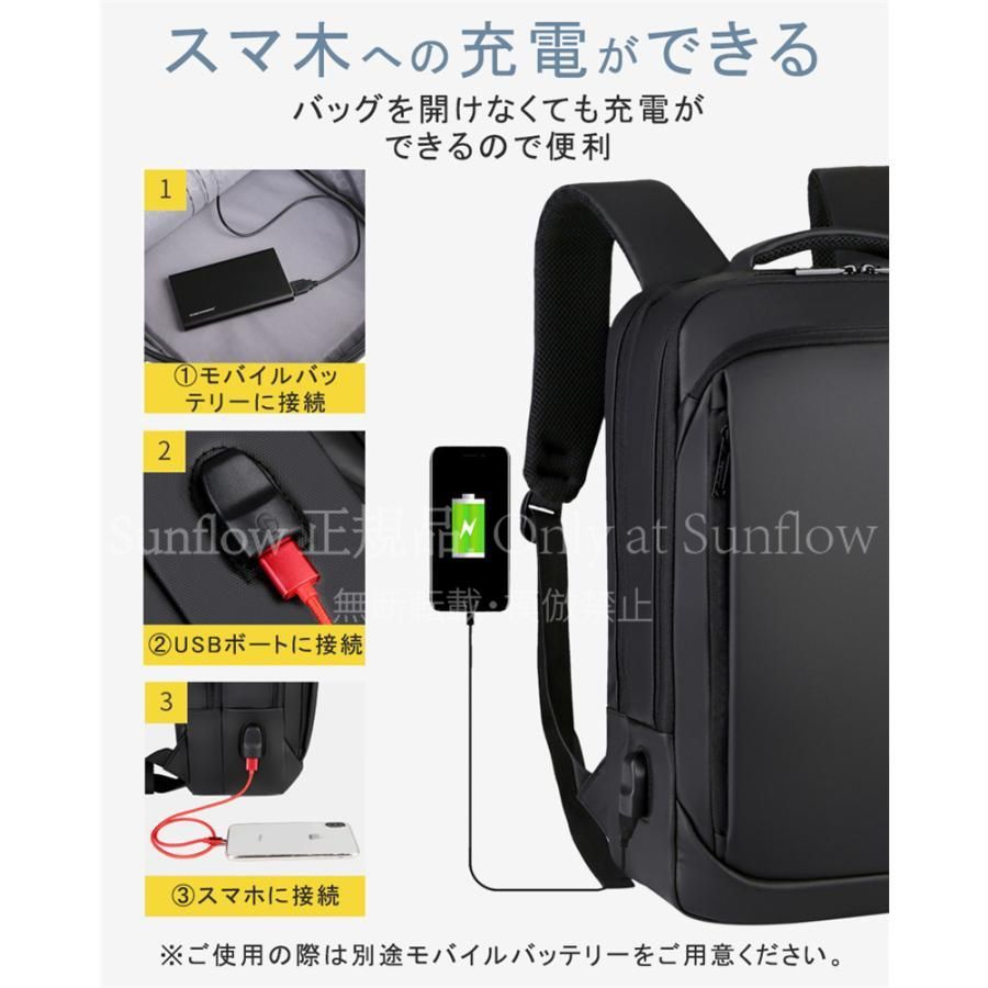 ◆USBポート付き:リュック内にモバイルバッテリーを入れusbコードをつなぎ、リュックを開けずにスマホ充電可能。