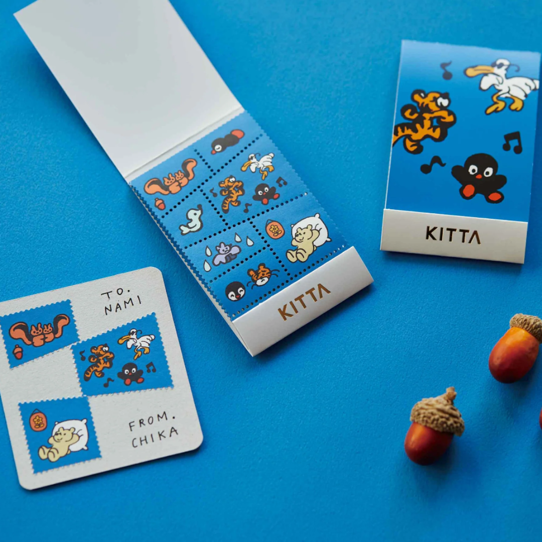 かさばらずに持ち歩ける、切手風のデザインが魅力のマスキングシールです。 ミシン目入りで好きな大きさに切り取ることができ、手帳やメッセージカードのデコレーションに最適です。 和紙素材なので貼り直しも可能です。 表紙を閉じればカードサイズになり、手帳のポケットにすっきり収まります。