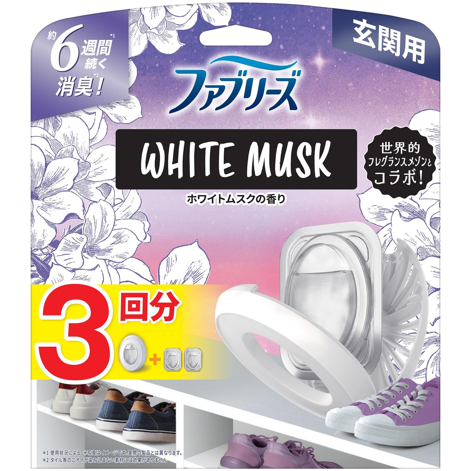 玄関用消臭剤ファブリーズにつめかえタイプ誕生360°消臭テクノロジーが、有効成分を空間中に行き渡らせ、空気の循環が悪い玄関に溜まった生活臭もすっきり消臭します。6週間使い始めから終わりまで効果が持続(使用状況による)ボタンを押すだけの簡単設計ホワイトムスクの香り