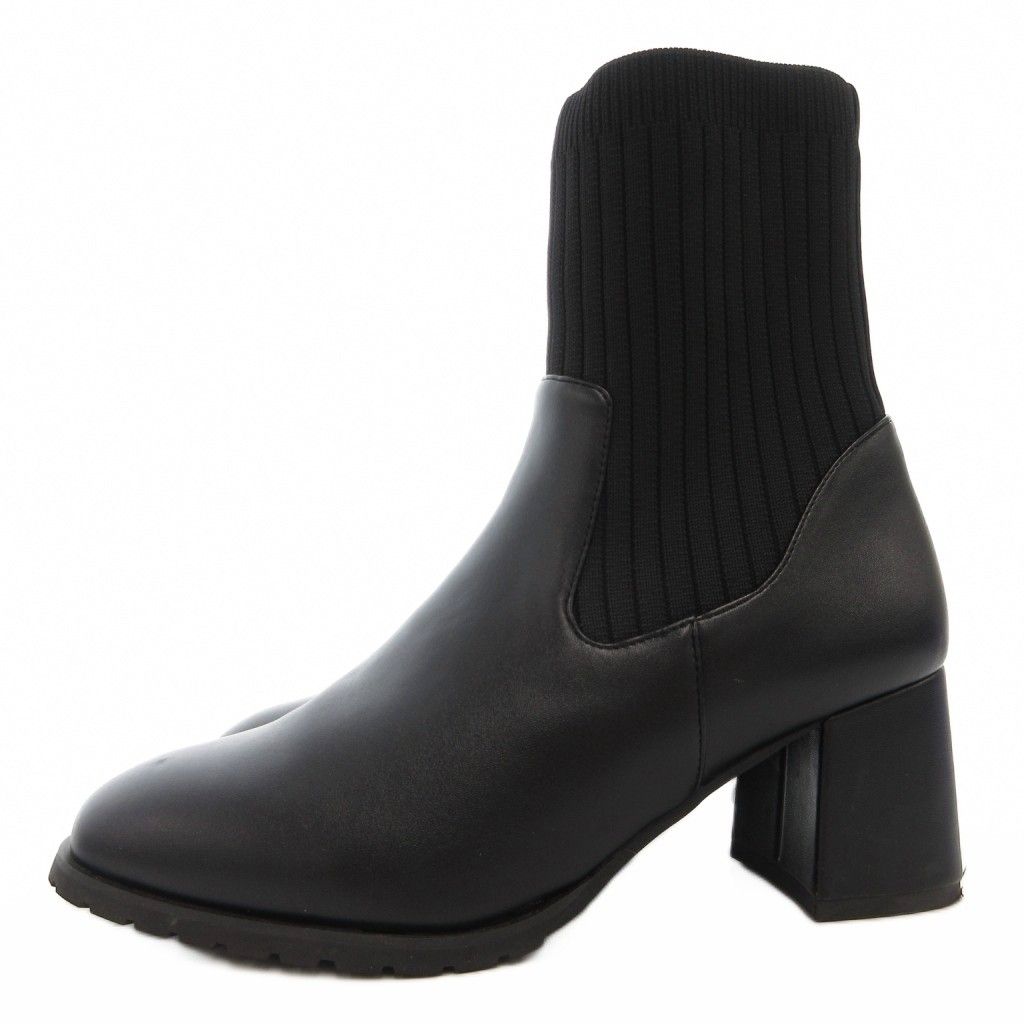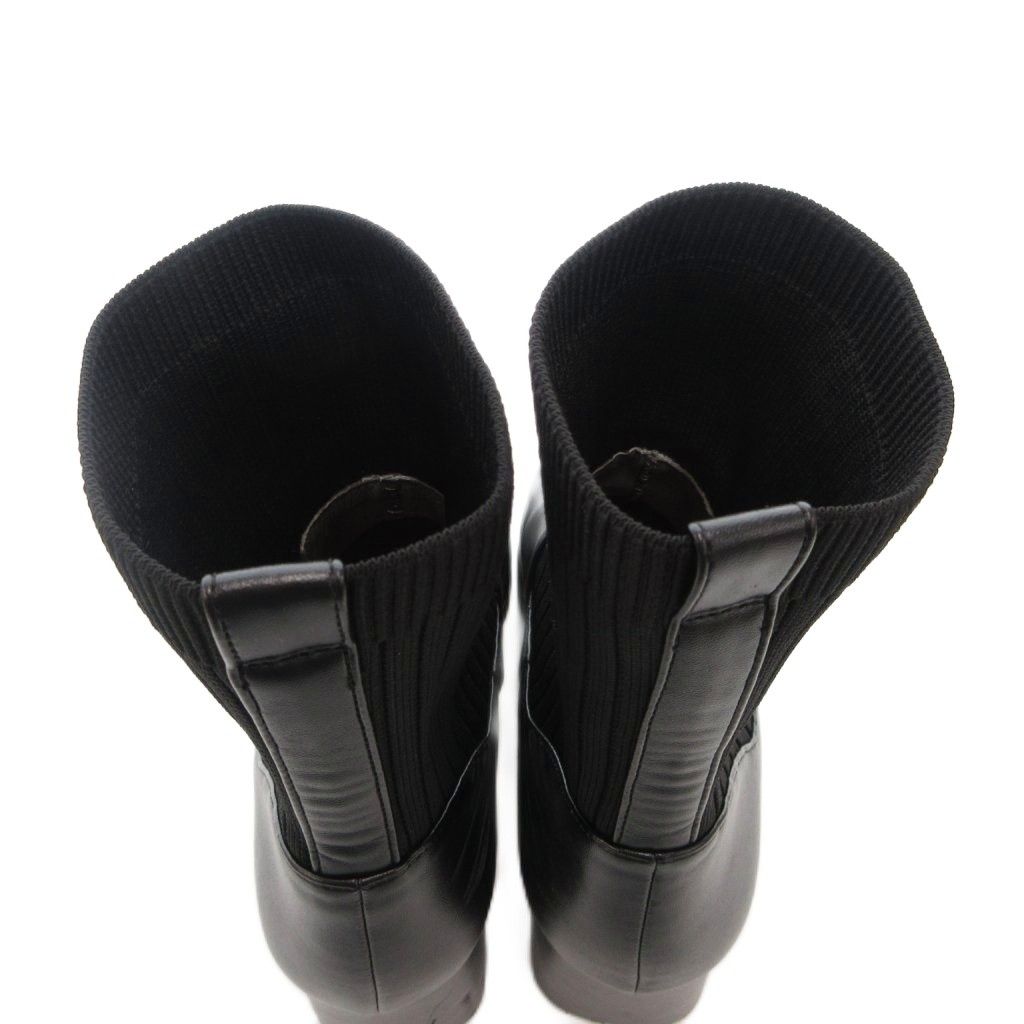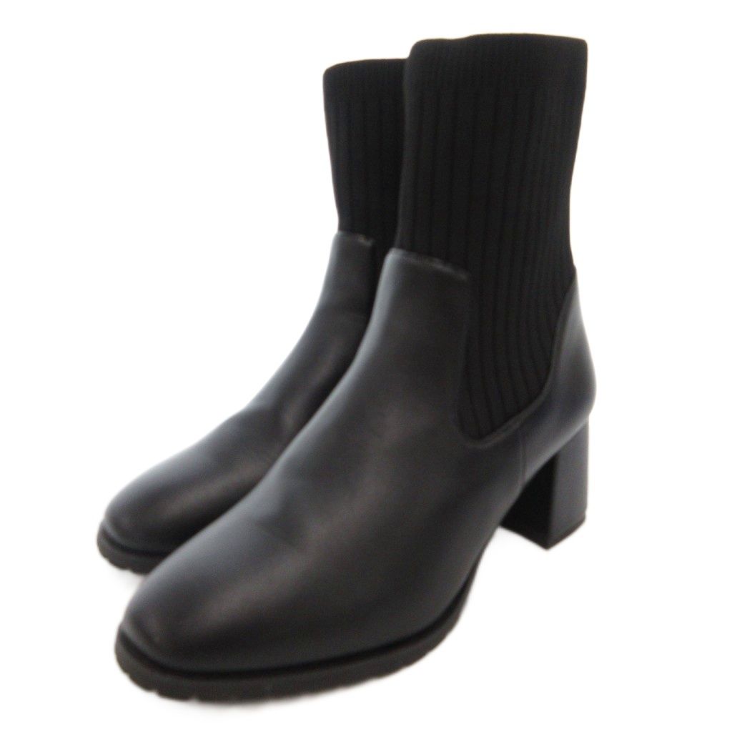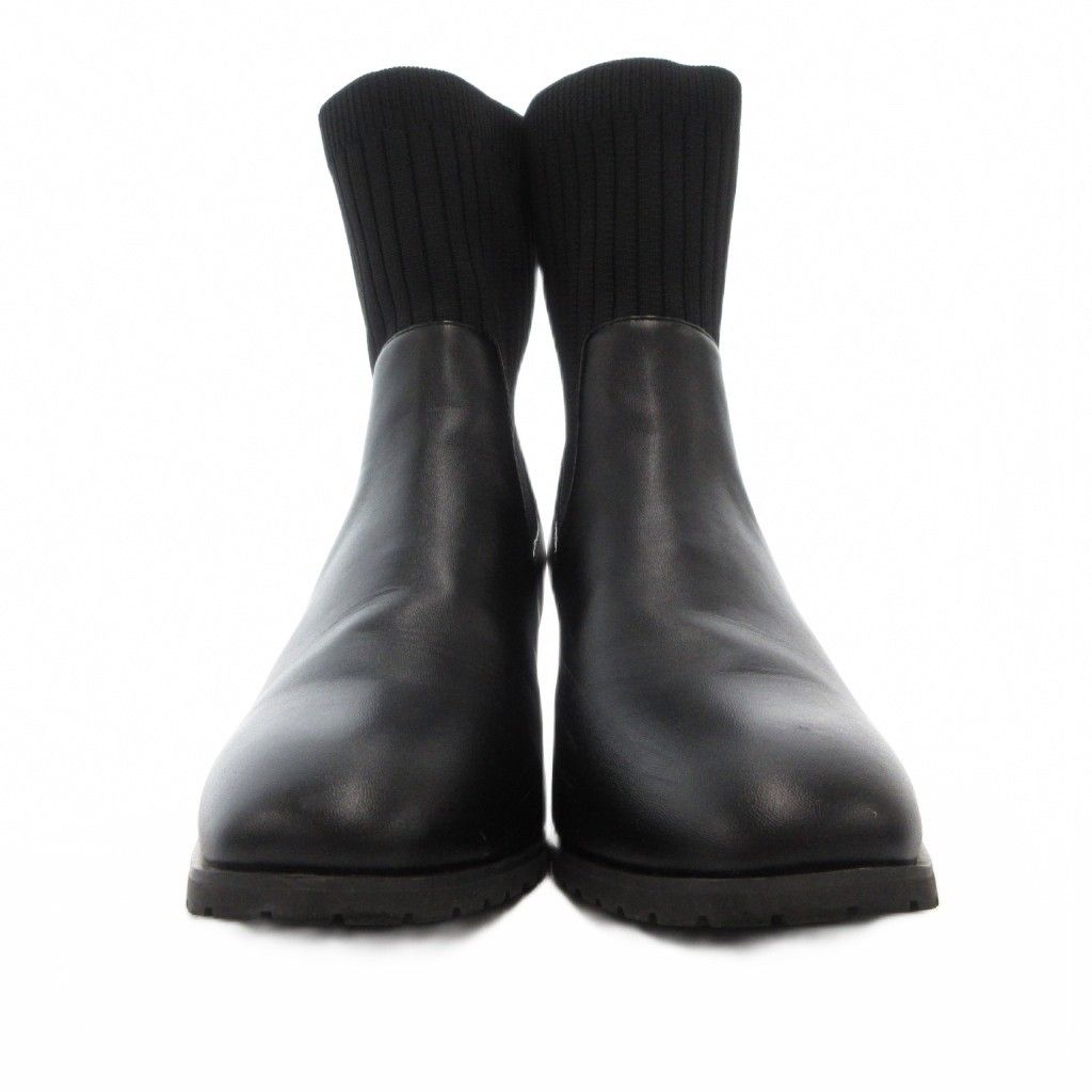 【商品名】オリエンタルトラフィック ORIENTAL TRAFFIC ショートブーツ L ニット 切り替え ハイヒール チャンキーヒール 黒 ブラック /AE