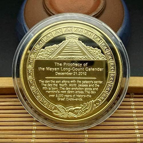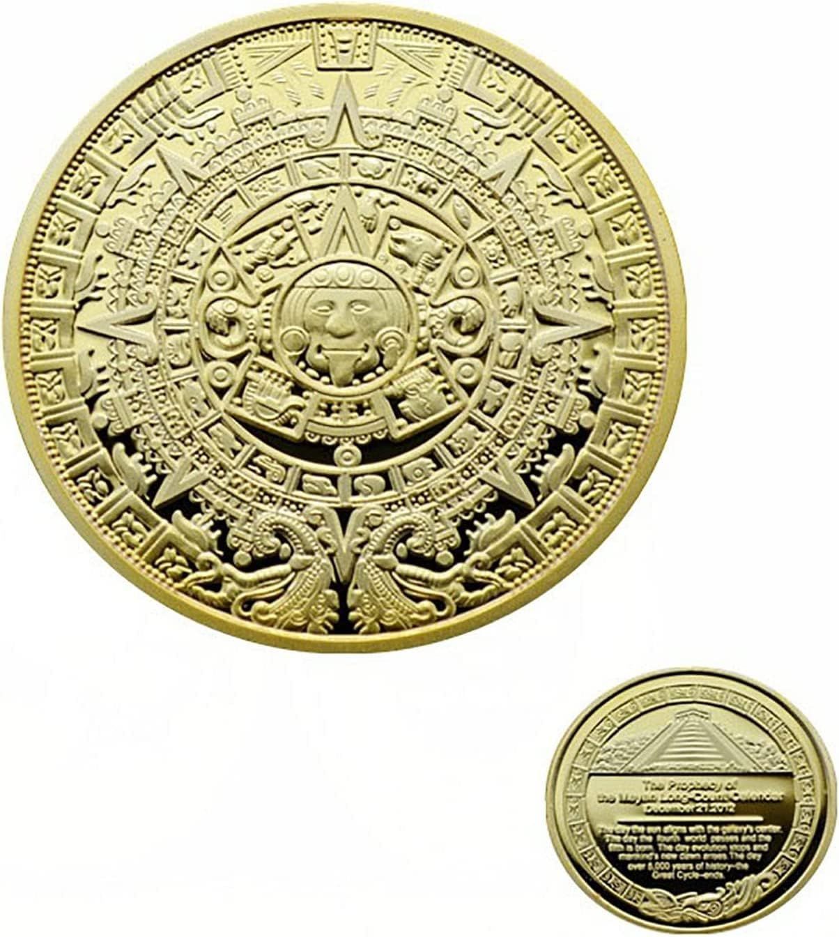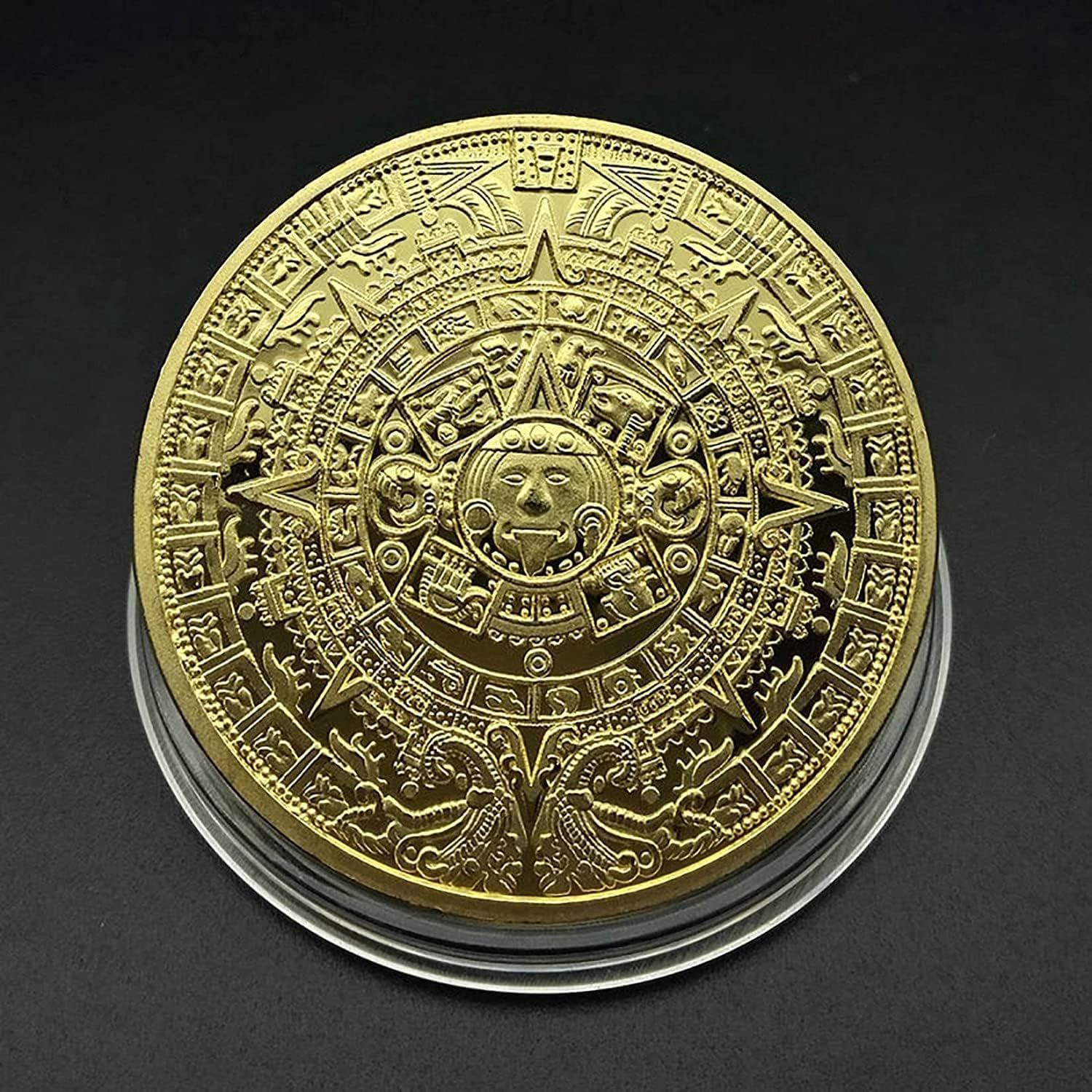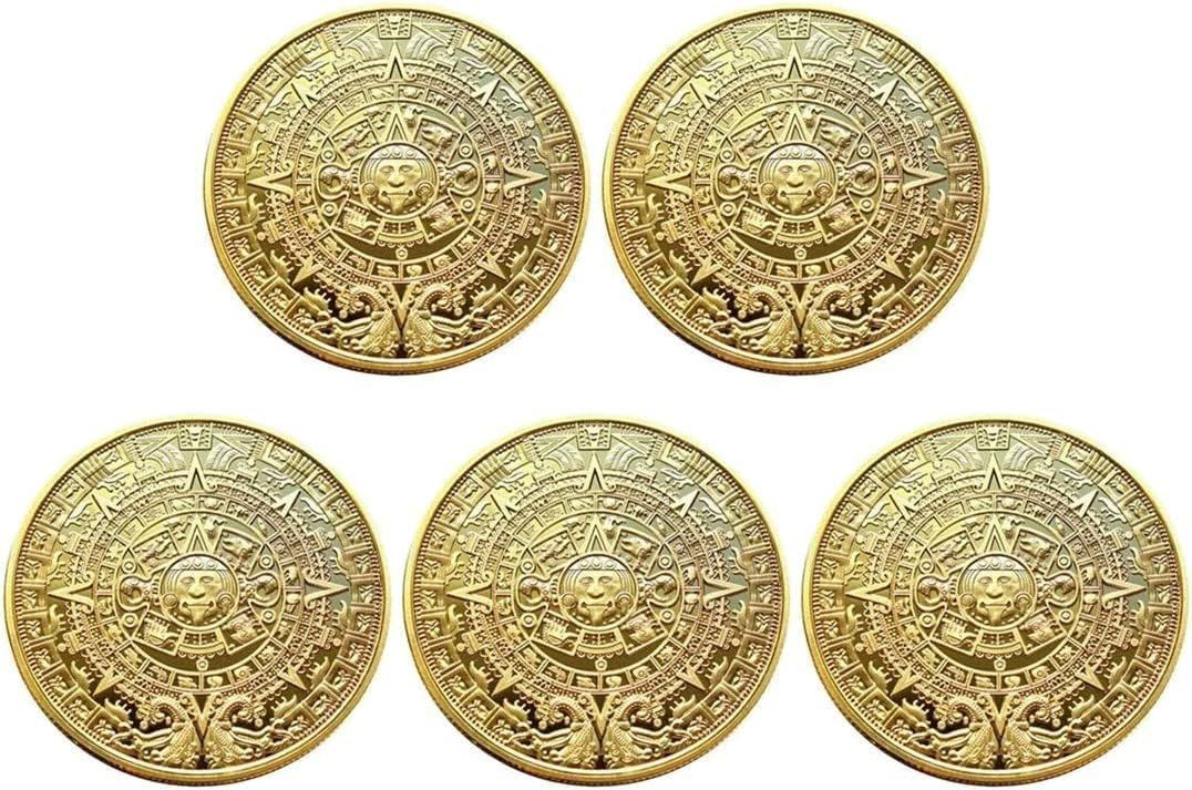 URUON マヤ文明 アステカカレンダー コイン メタル 記念 アートコイン 直径40mm (ゴールド) 5個入り