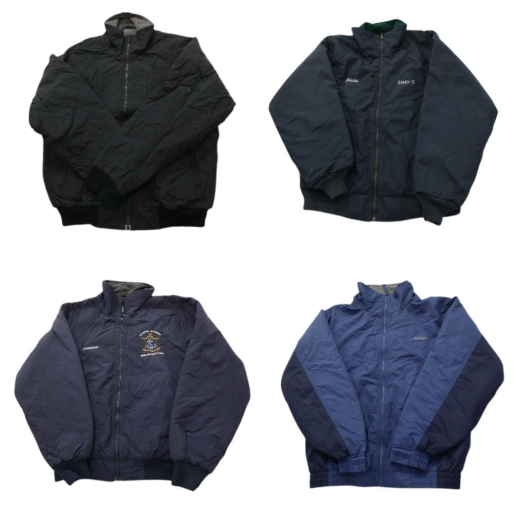 古着卸 まとめ売り 裏地フリース ウォームアップ ジャケット 4枚セット (メンズ S ) バイカラー スタンドカラー ネイビー 中古 古着 ND1178