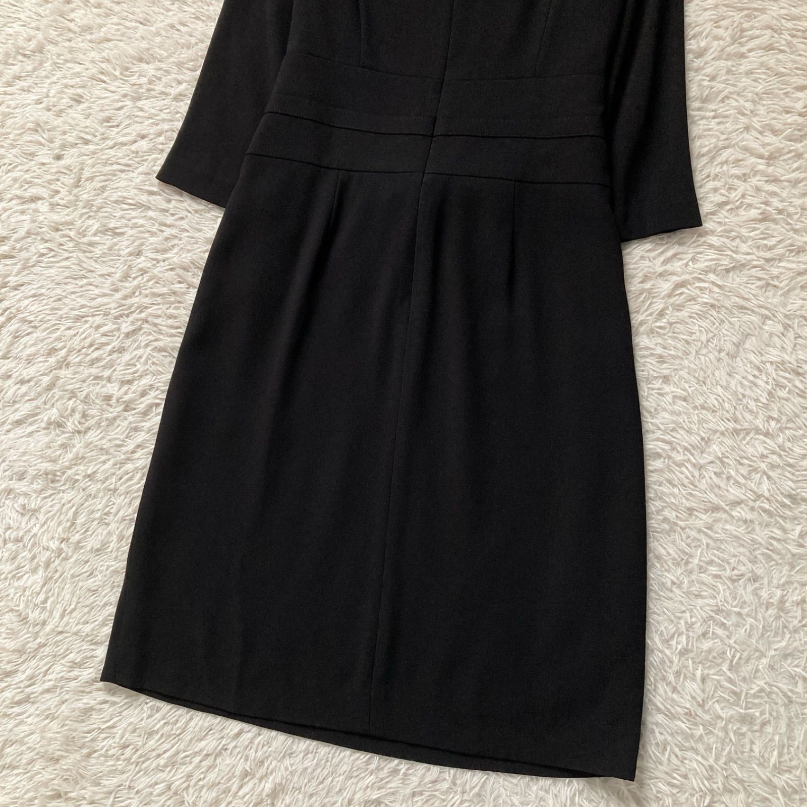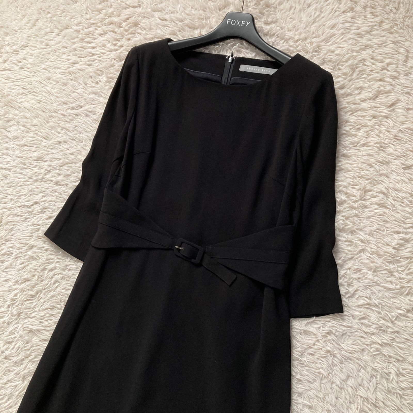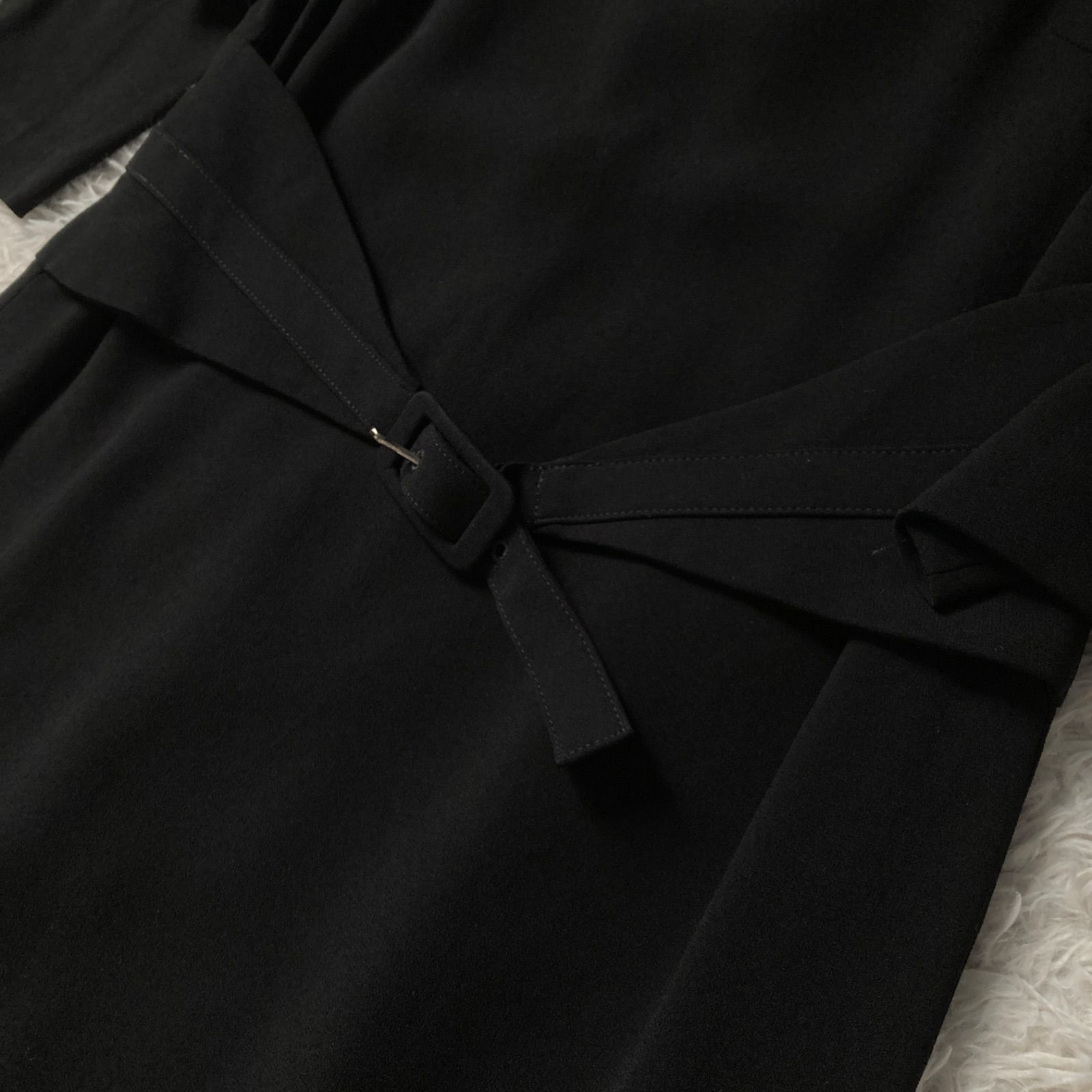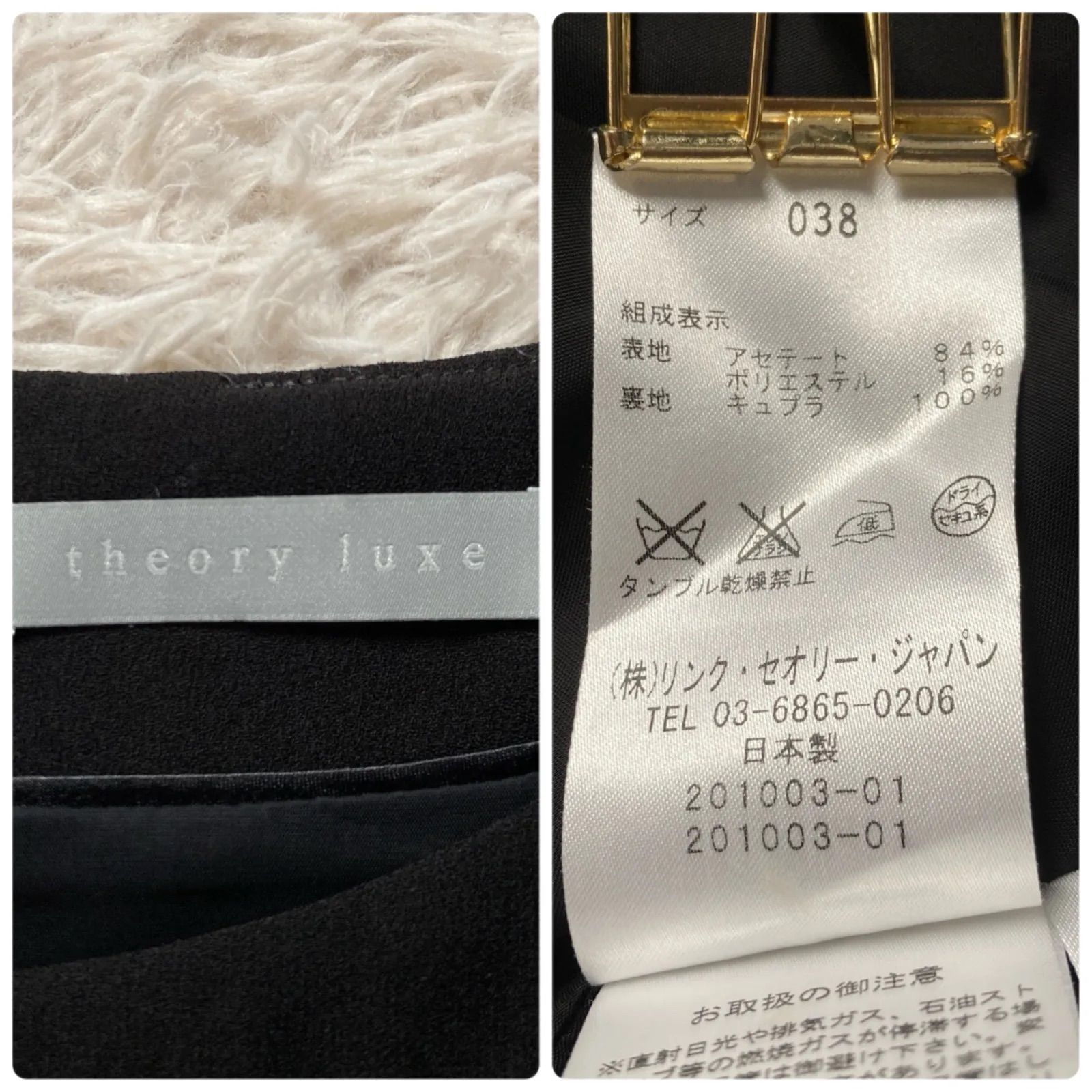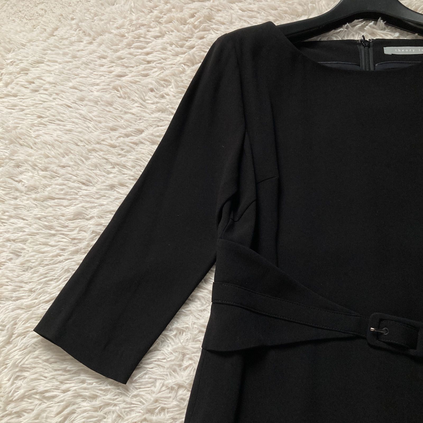 美品 セオリーリュクス theory luxe ウエストベルトワンピース ジョーゼット ひざ丈 七分袖 清楚 上品 黒 ブラック 38 サイズ M アセテート混 日本製