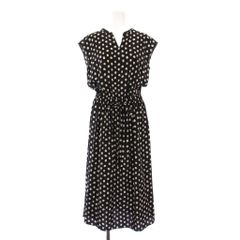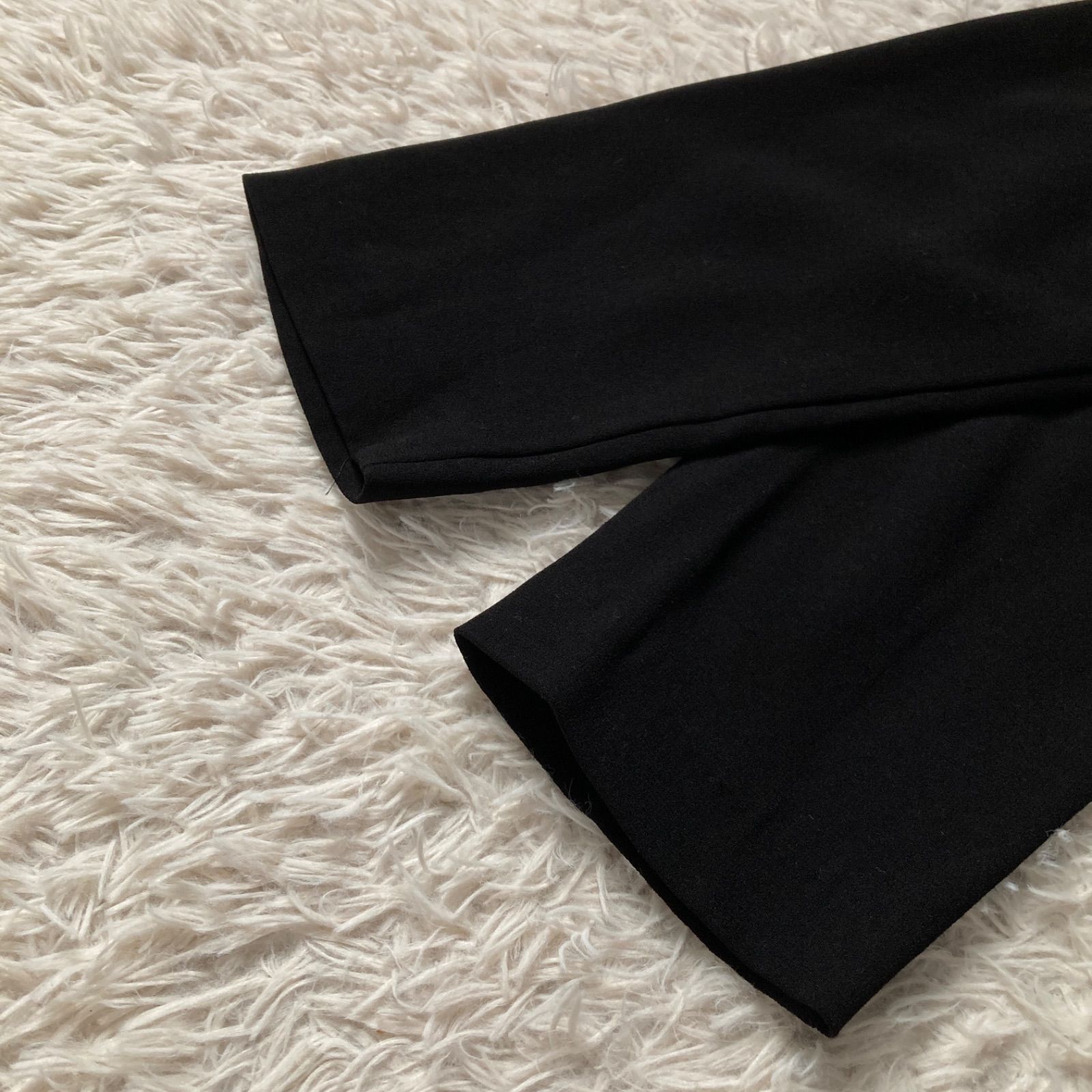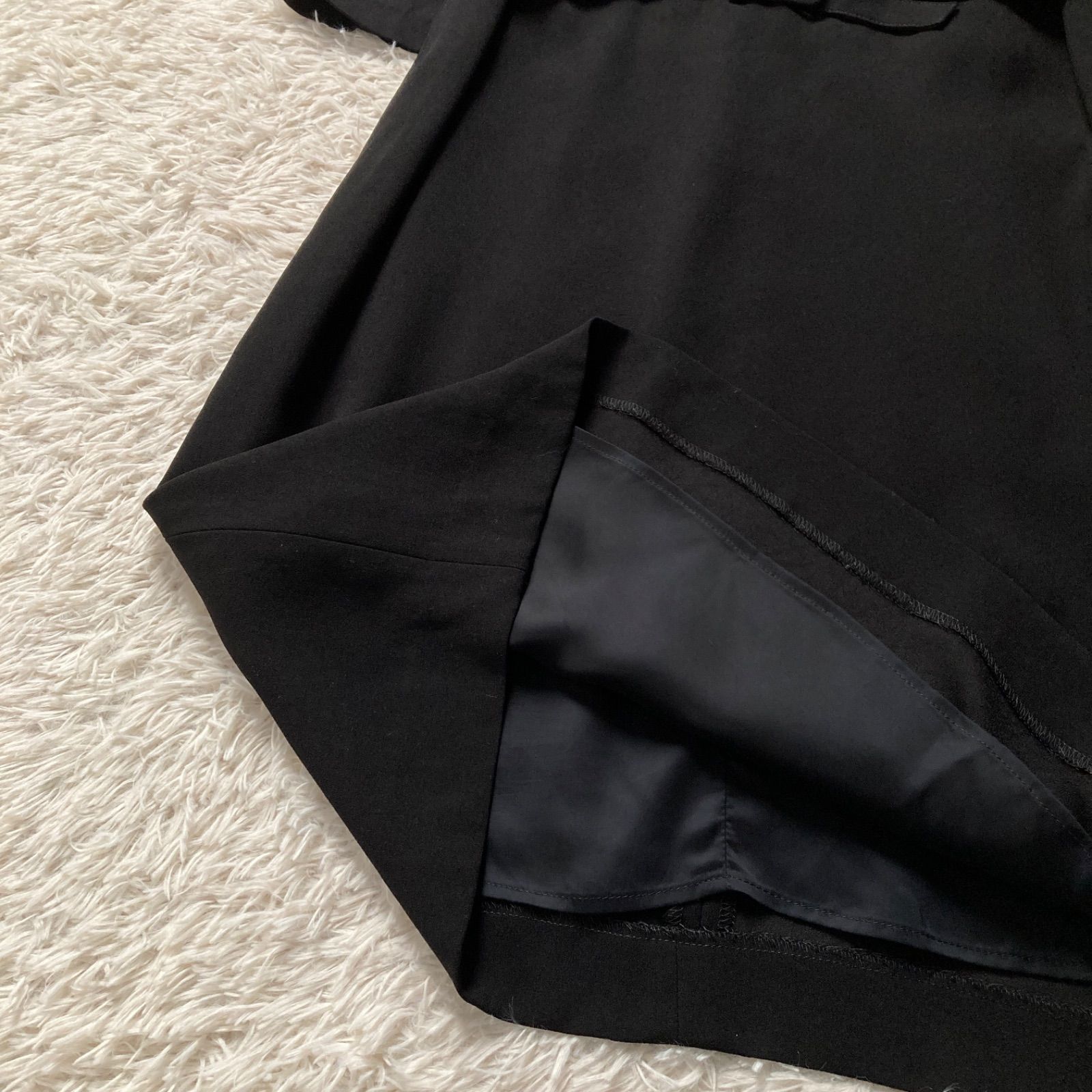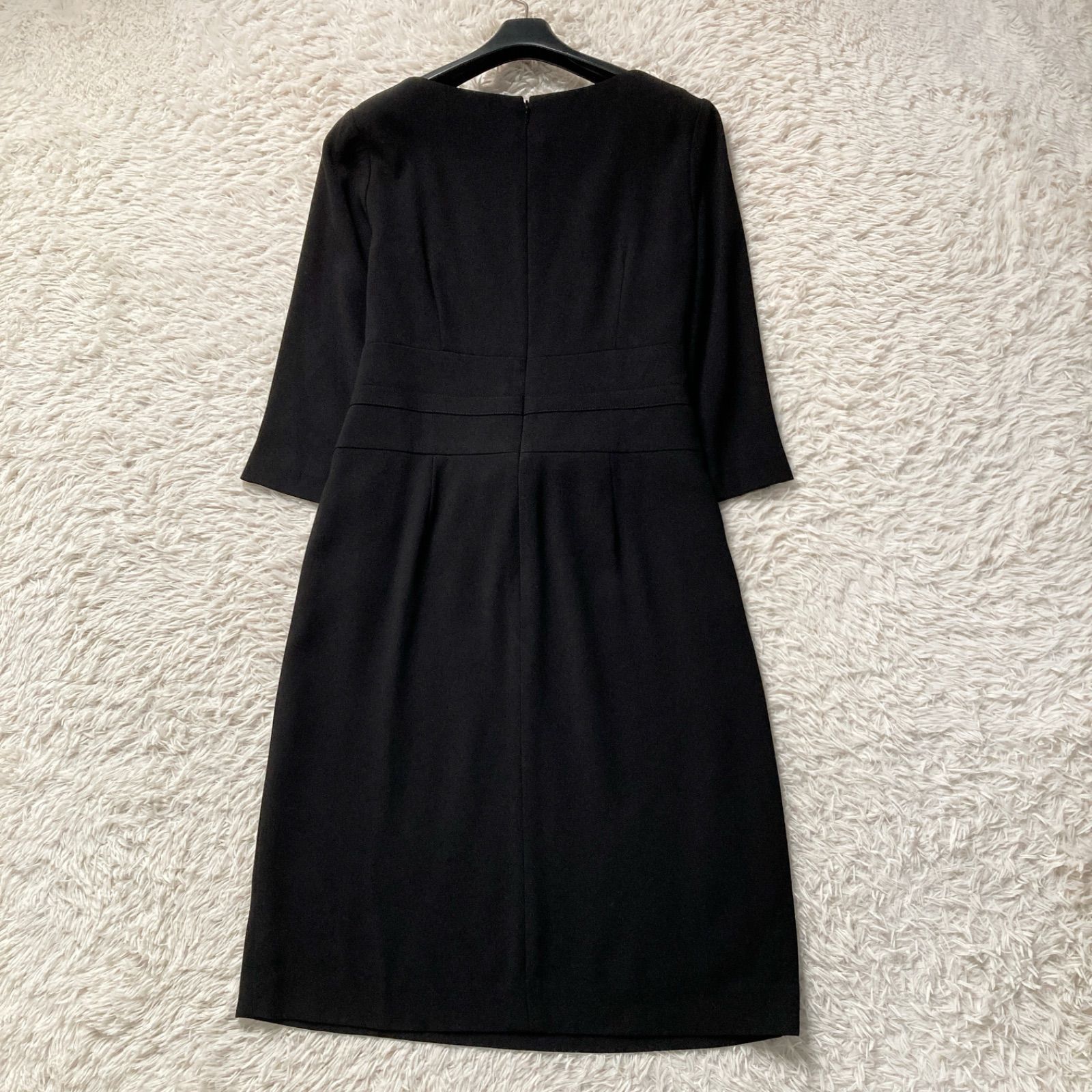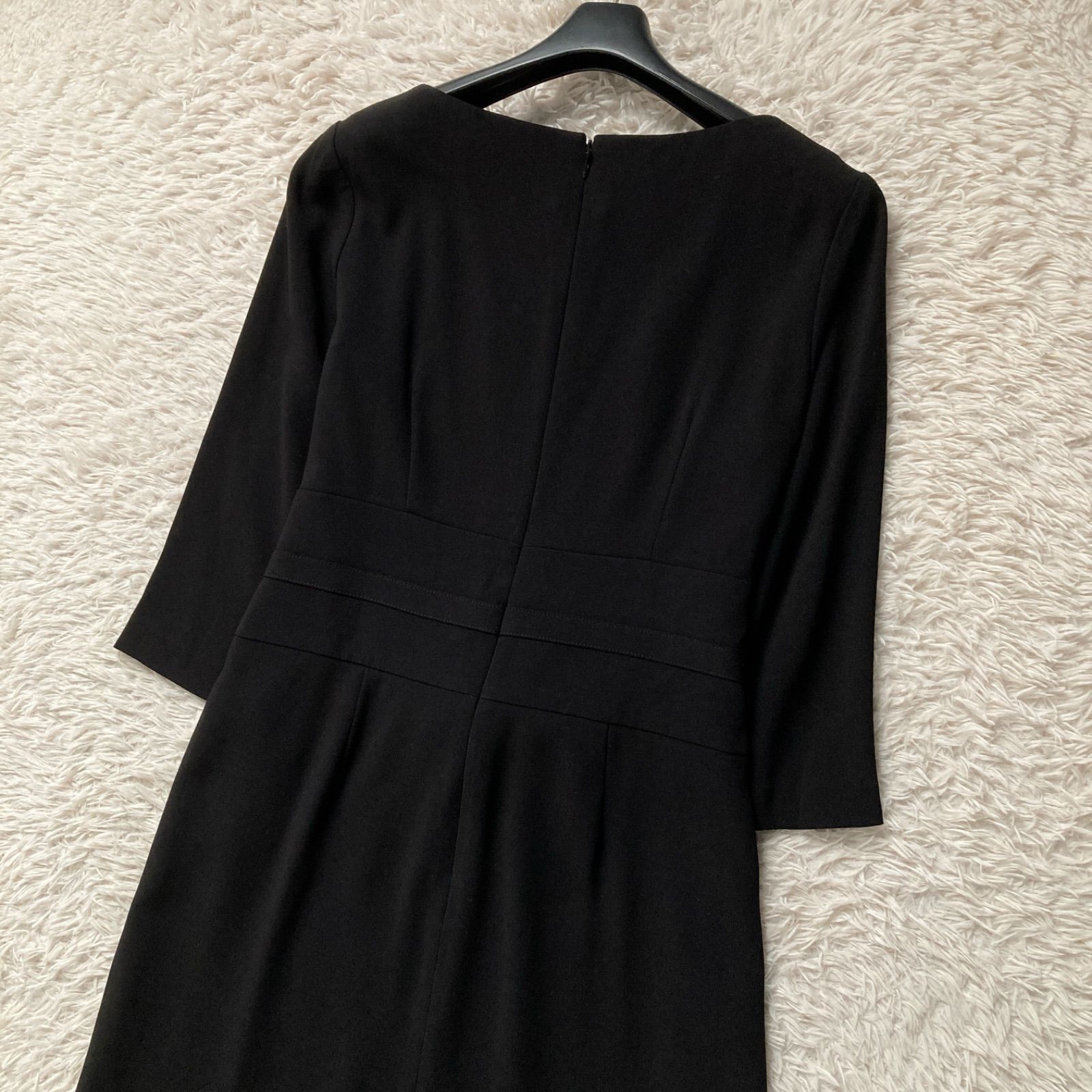 美品 セオリーリュクス theory luxe ウエストベルトワンピース ジョーゼット ひざ丈 七分袖 清楚 上品 黒 ブラック 38 サイズ M アセテート混 日本製