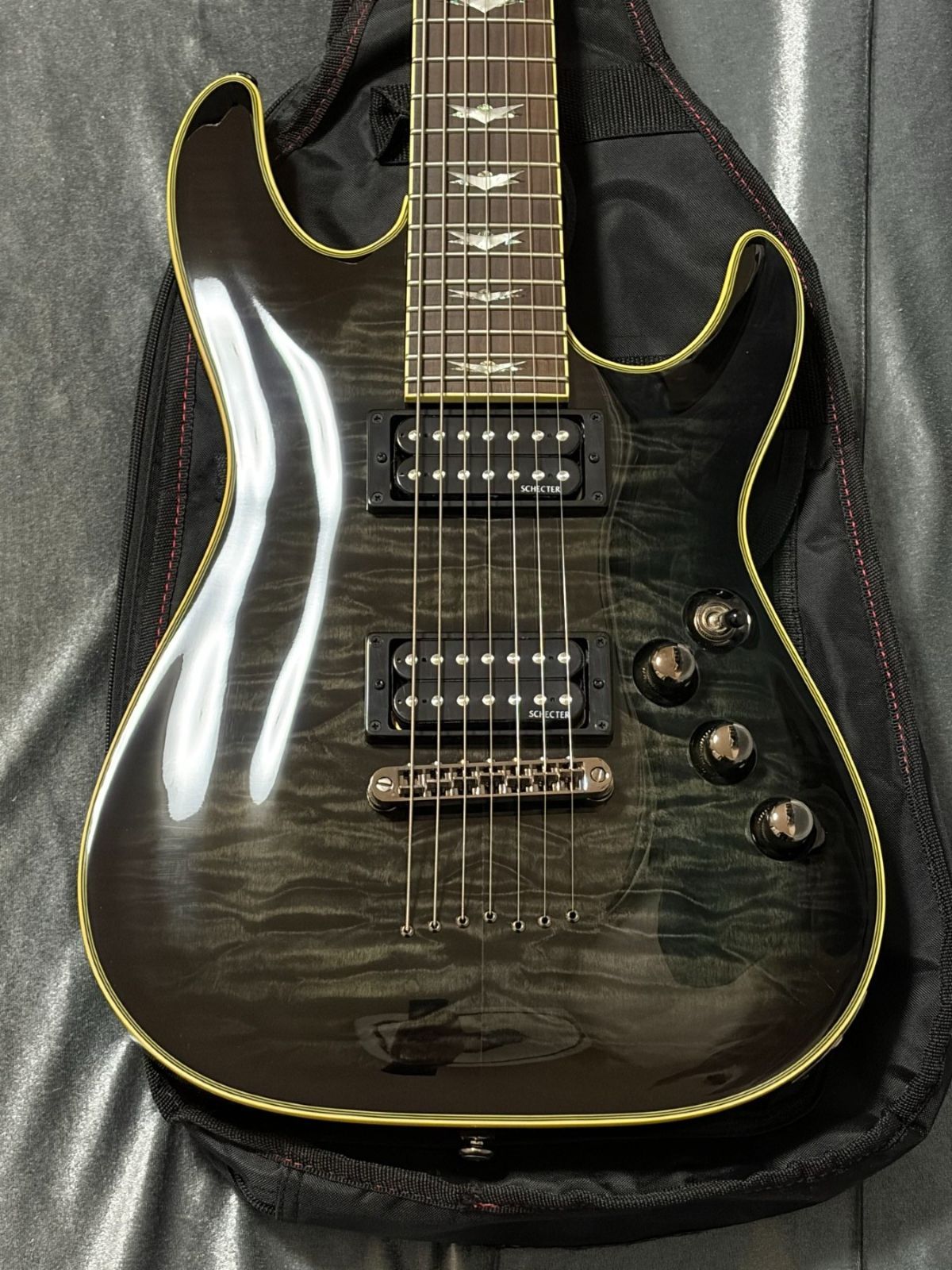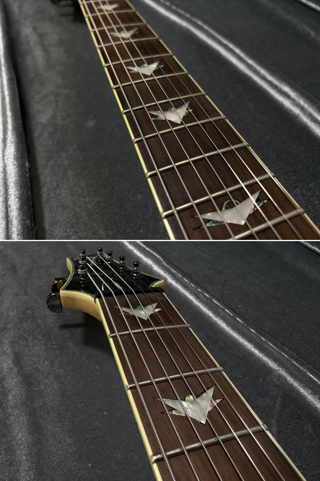ダイヤモンドカットインレイが施された指板など、豪華な見栄えの1本です。