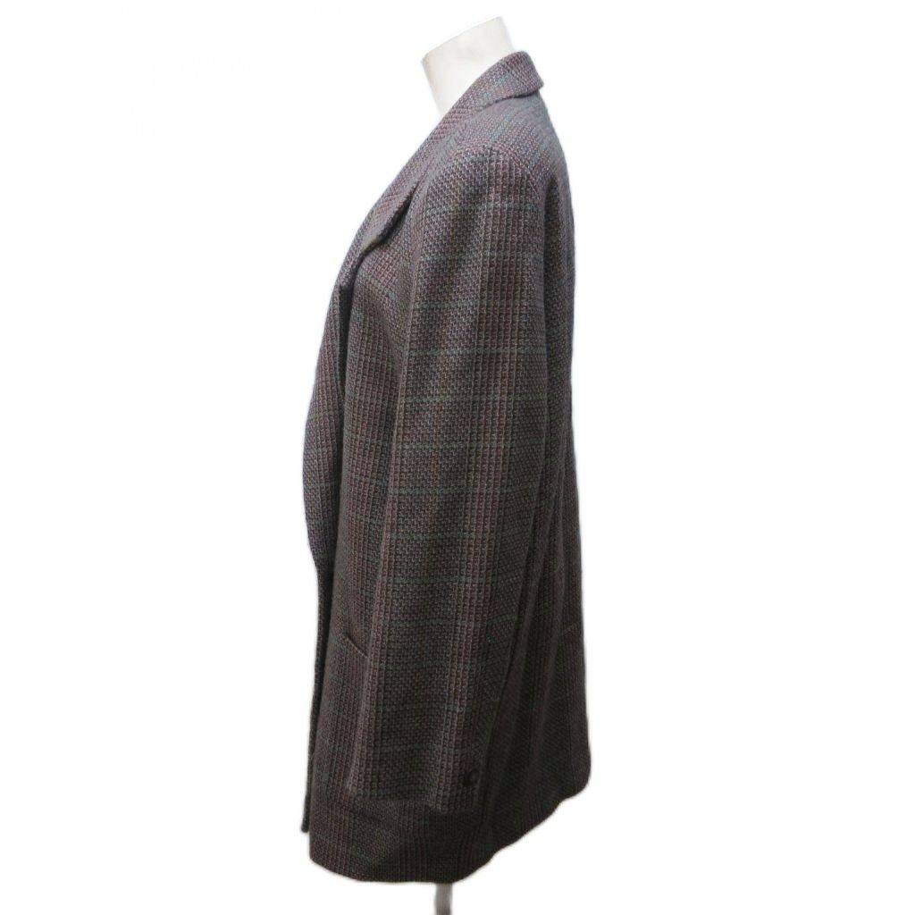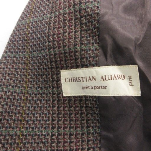【商品名】クリスチャンオジャール CHRISTIAN AUJARD ツイード コート ジャケット グレンチェック ウール ダブル ロング 茶 ブラウン 系 1207