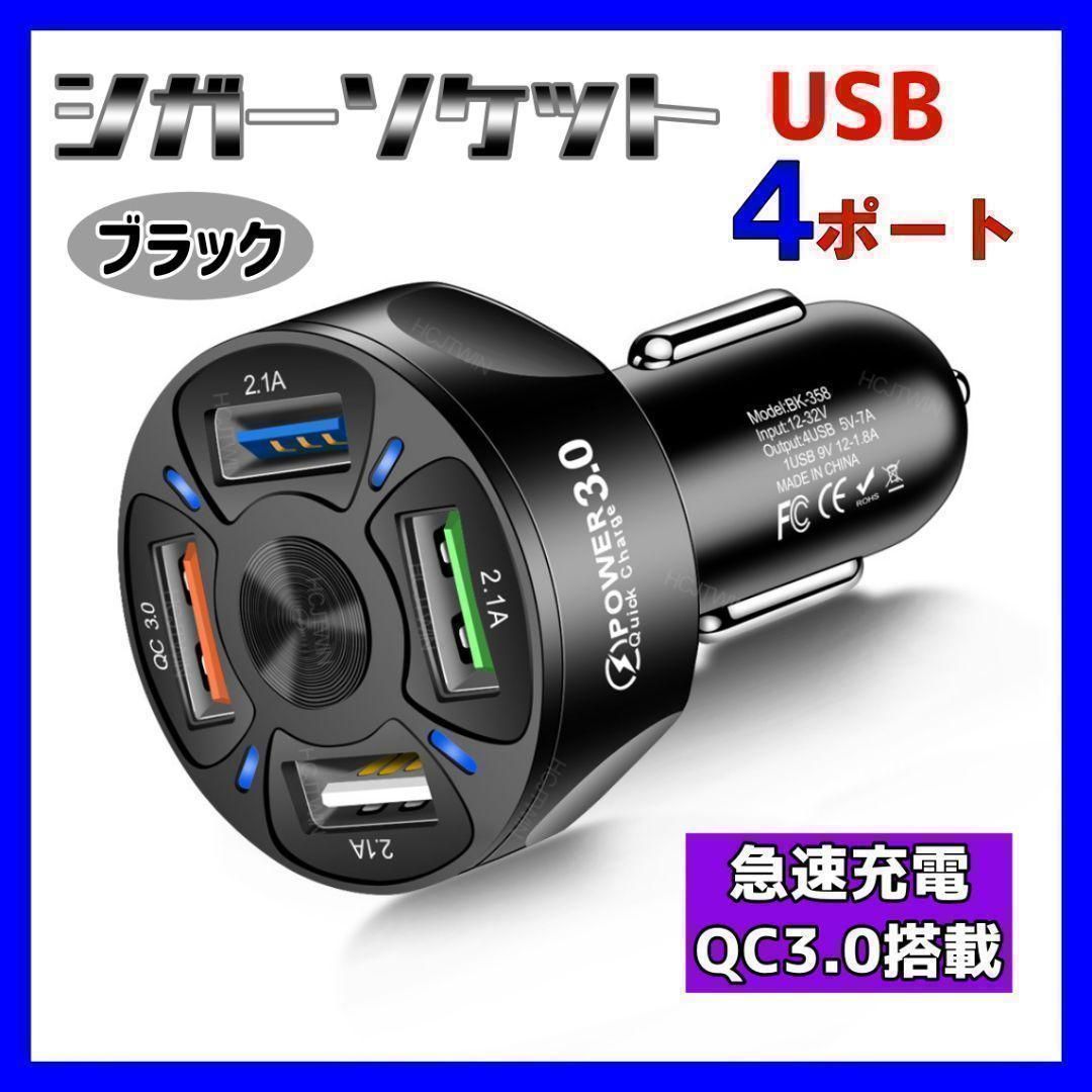 【ブラック/ホワイト】シガーソケット USB カーチャージャー 充電器 4ポート 急速充電 QC3.0対応