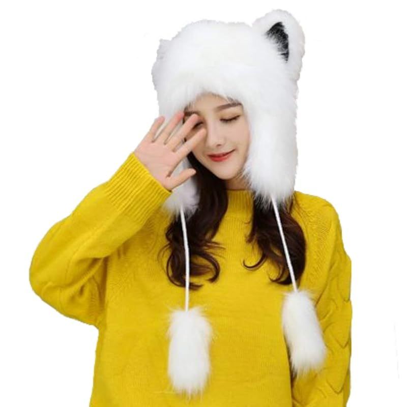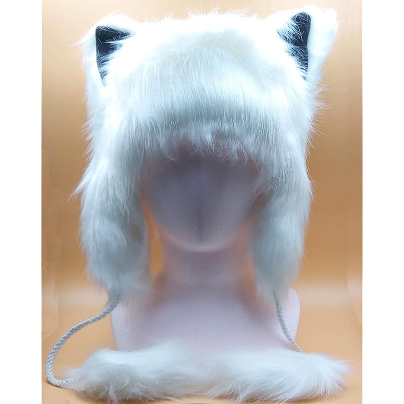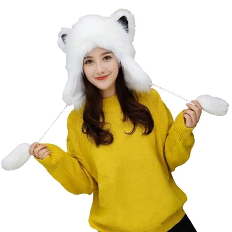 商品名:【新品】 [APOSITIV]猫耳 帽子 白 レディース 大人 ファー キャスケット 耳あて ふわふわ 耳 キャップ ねこ 防寒 (白)