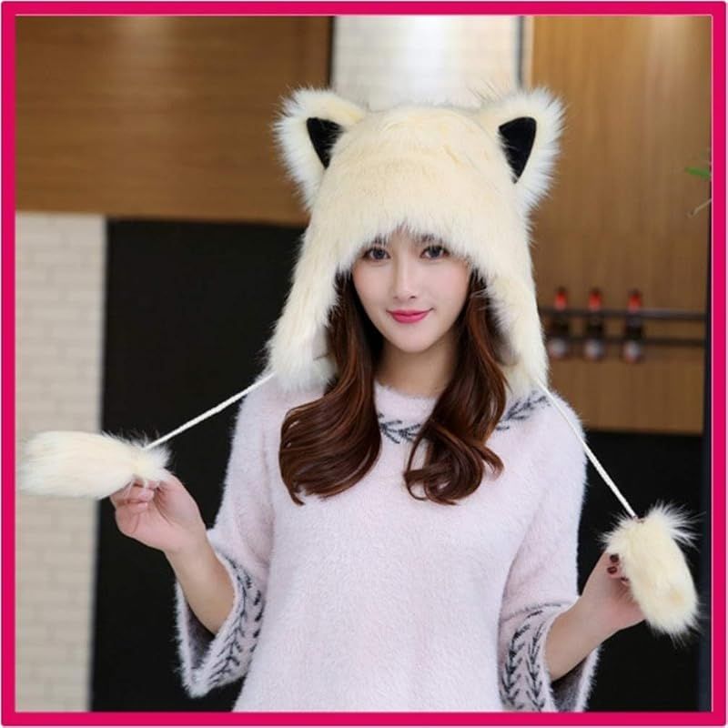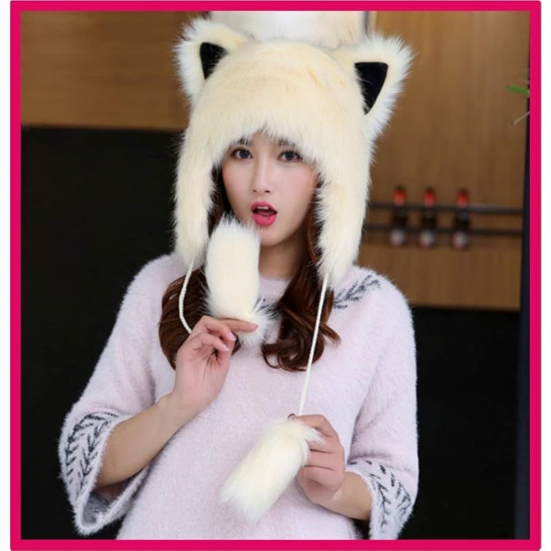 猫耳帽子の中は暖かくて外は触り心地抜群です。すっぽりかぶれるから小顔効果も期待大です。
