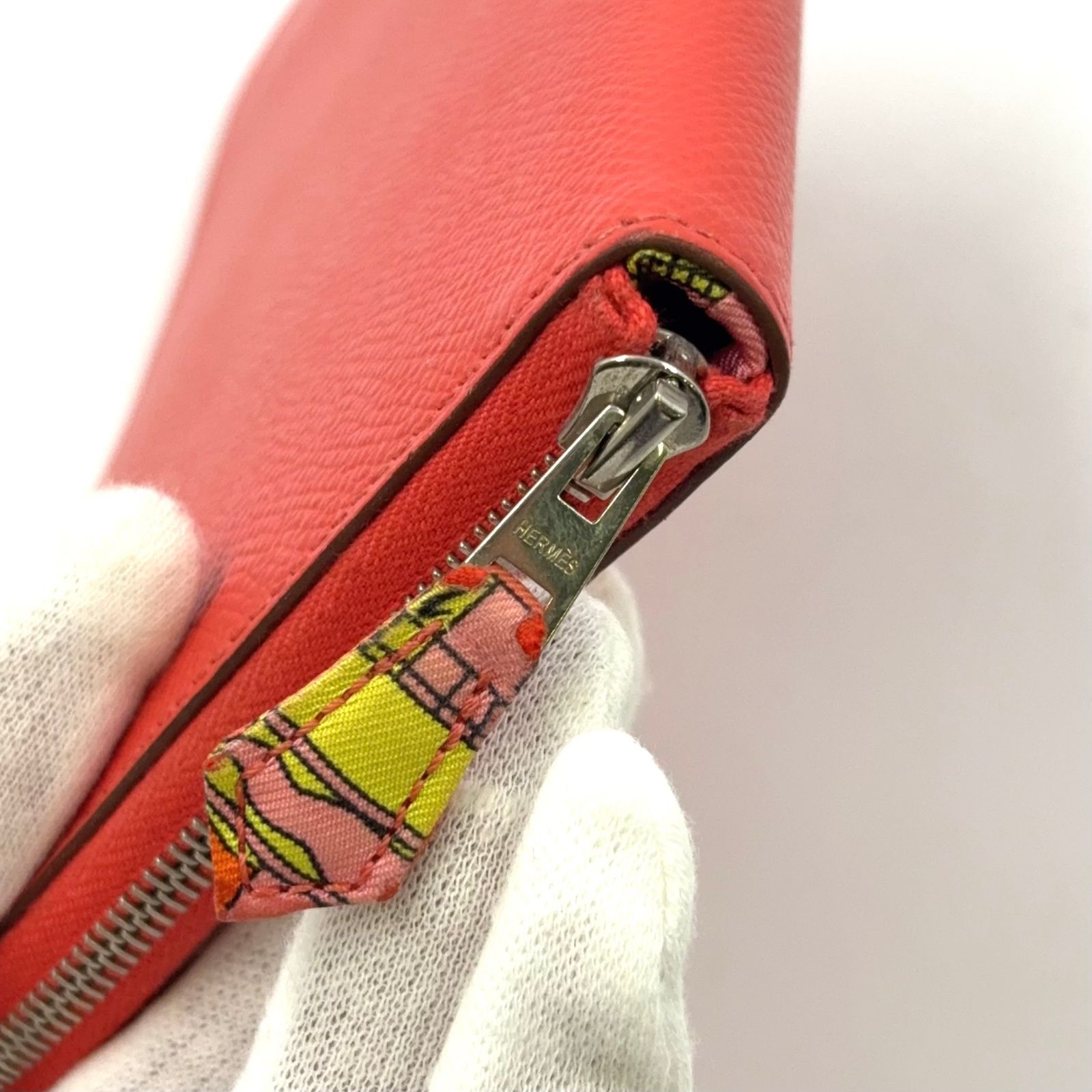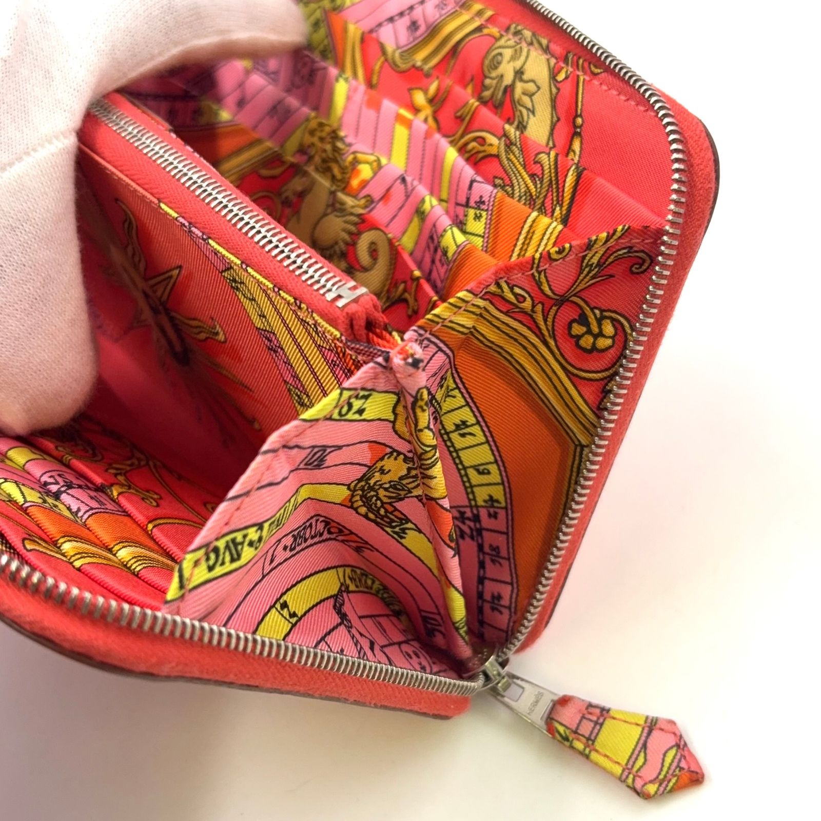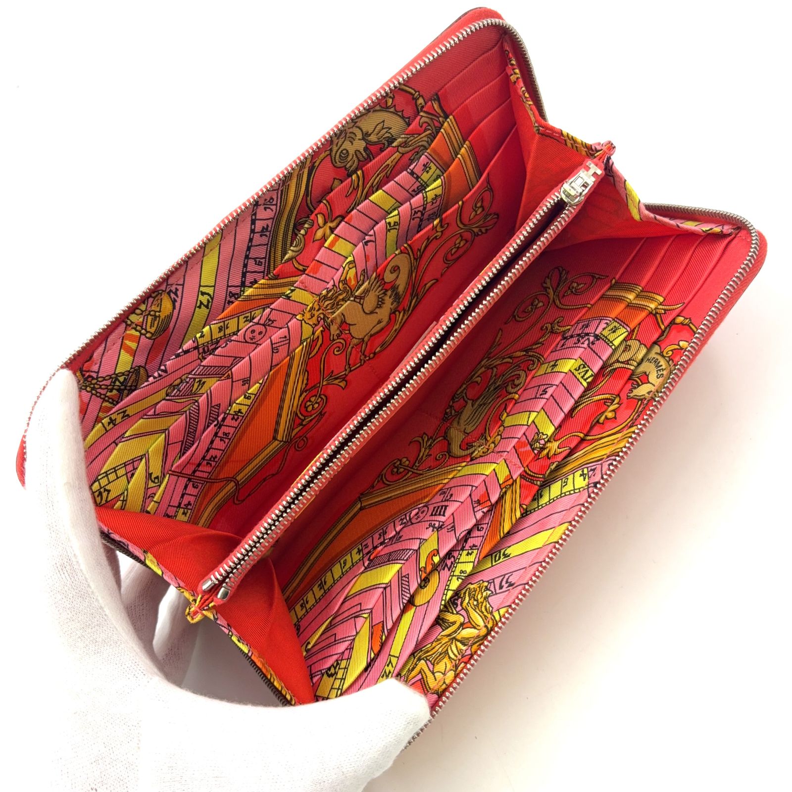 【商品名】HERMES アザップロング シルクイン ラウンドファスナー T刻印 レザー ピンク 長財布 シルバー