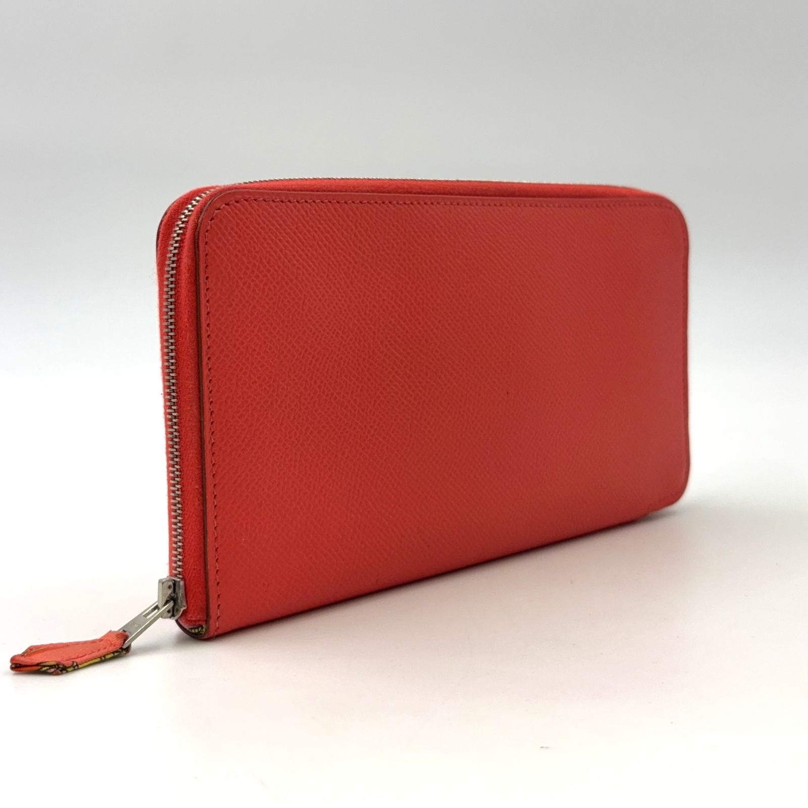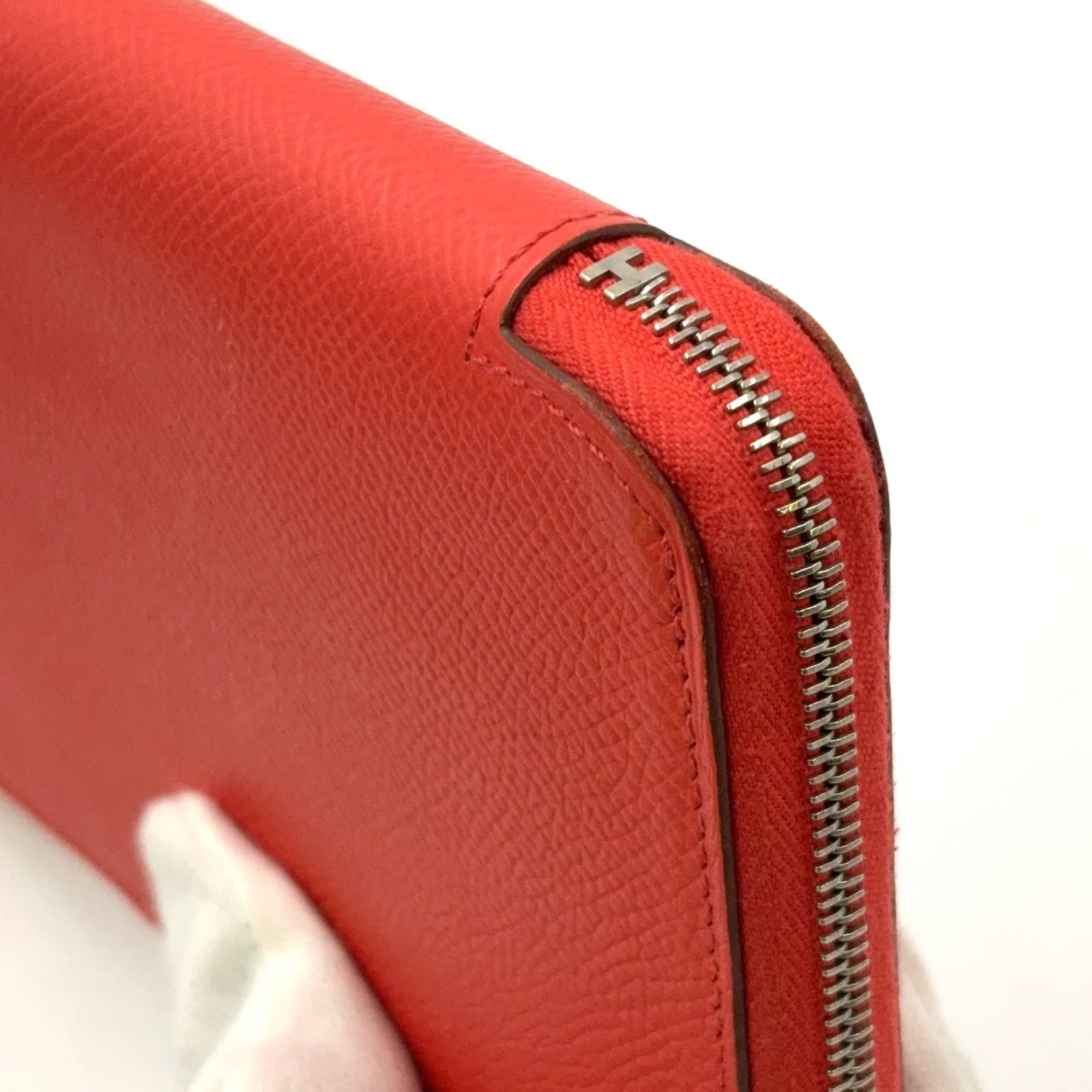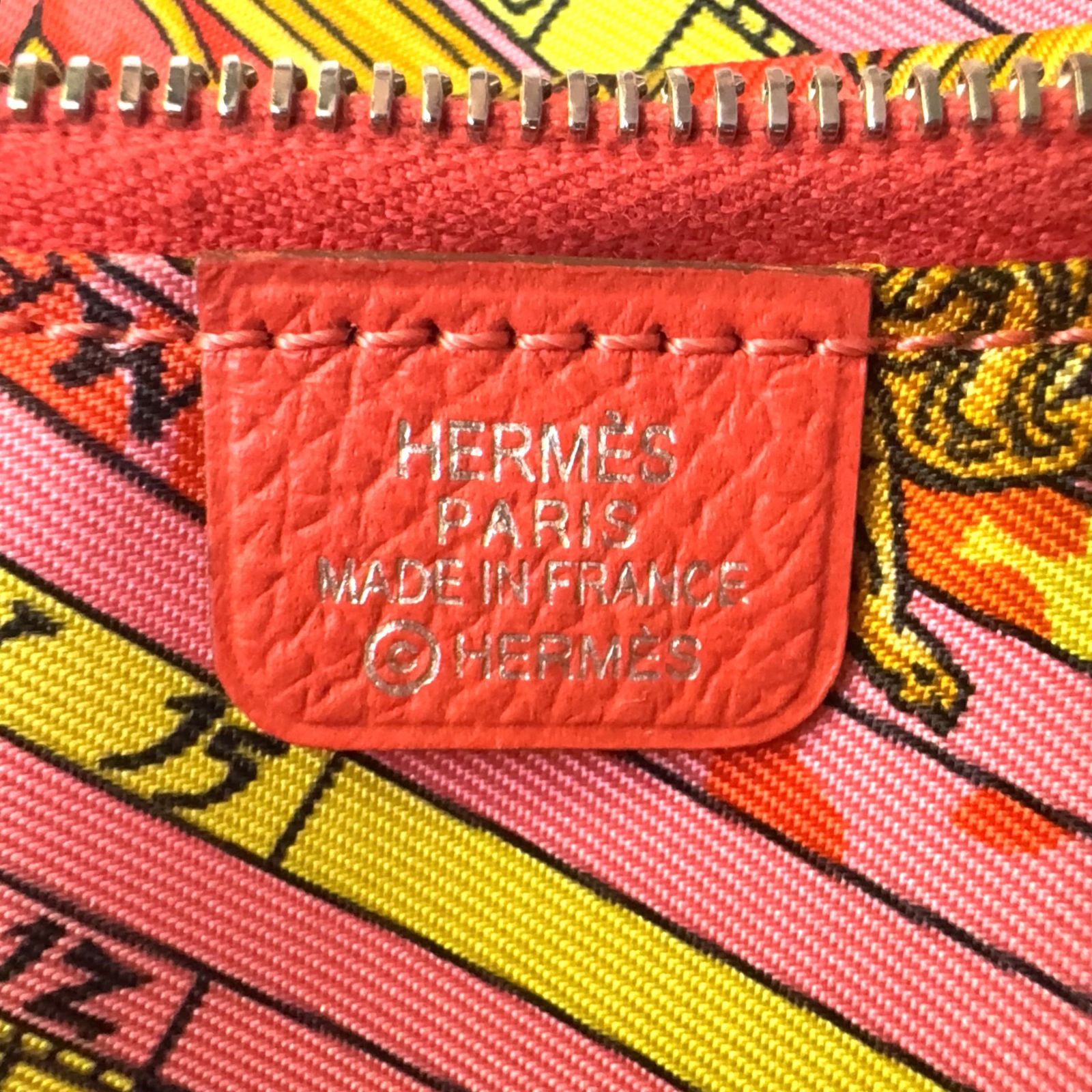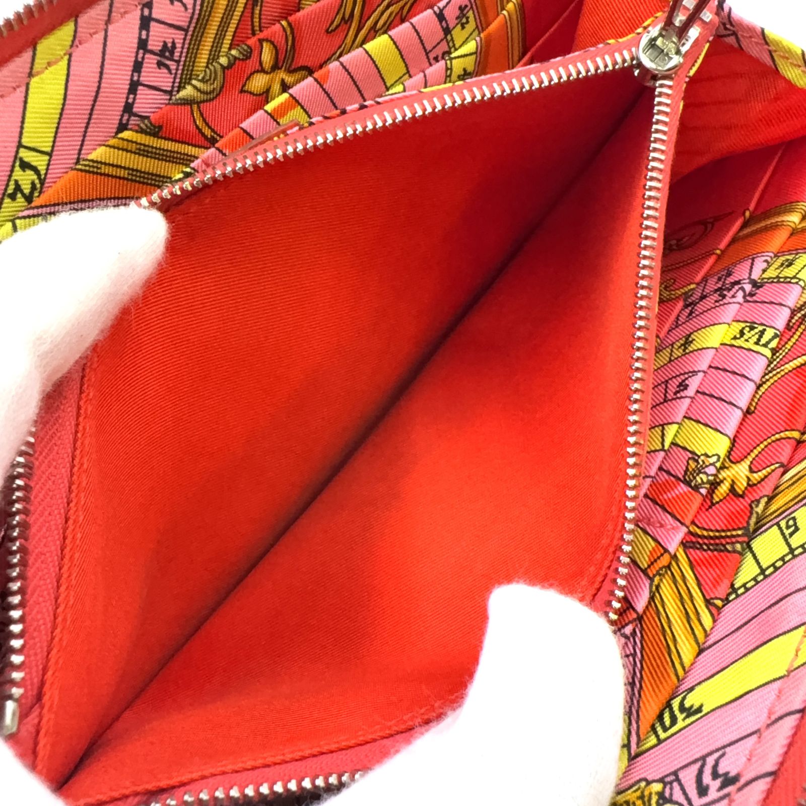 【商品名】HERMES アザップロング シルクイン ラウンドファスナー T刻印 レザー ピンク 長財布 シルバー
