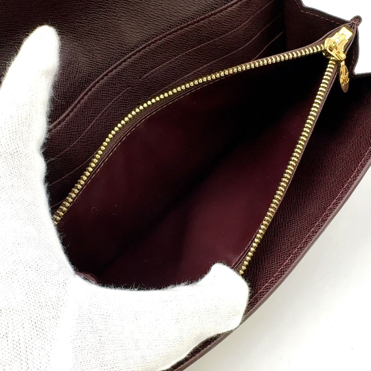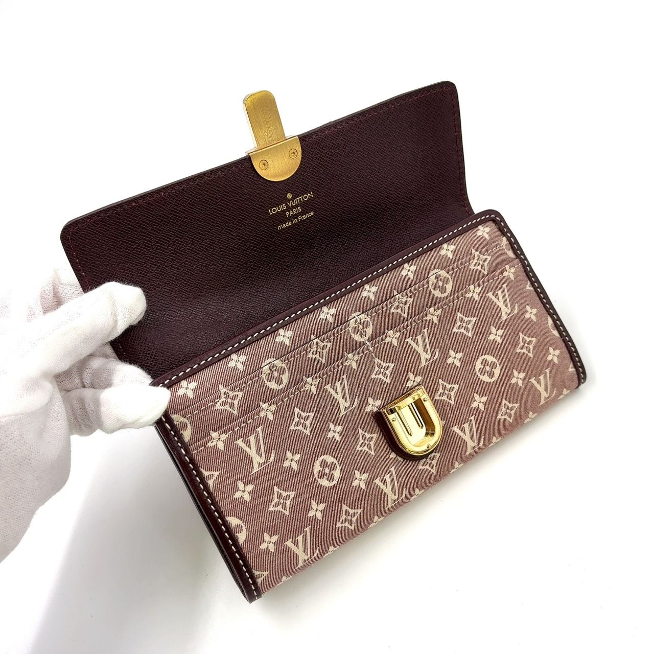 【商品名】LOUIS VUITTON ポルトフォイユ サラ モノグラムイディール モノグラムイディール レザー×キャンバス ブラウン×レッド 二つ折り長財布 ゴールド M63008