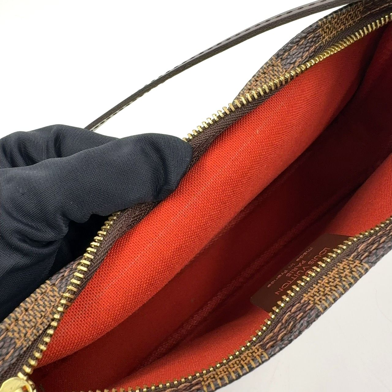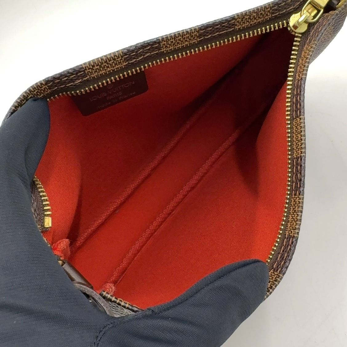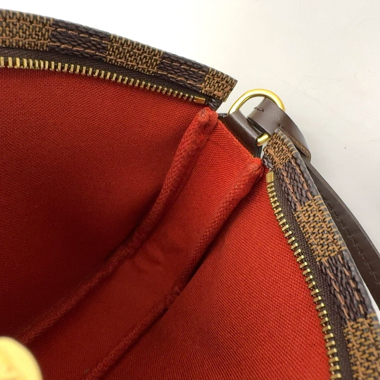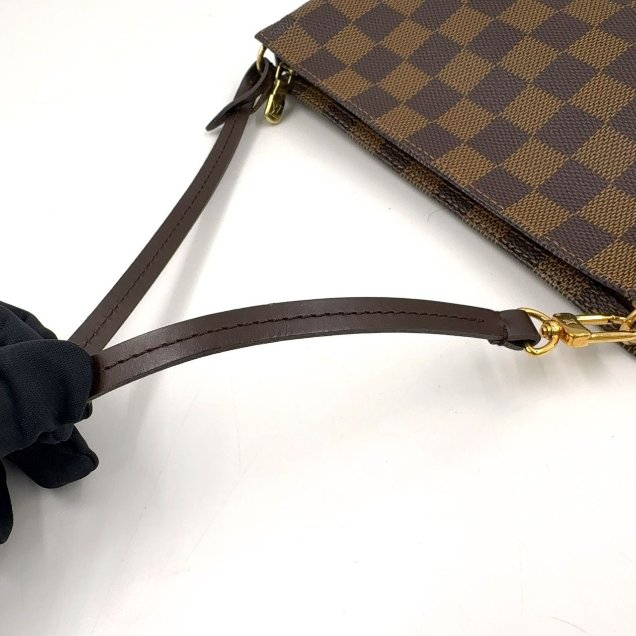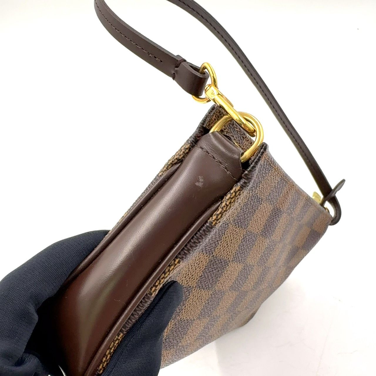 【商品名】LOUIS VUITTON ナヴォナ ダミエエベヌ ダミエエベヌ レザー×PVC ブラウン ハンドバッグ ゴールド N51983