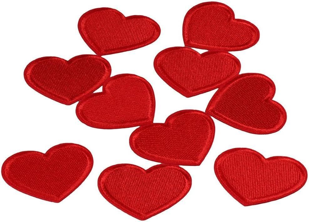 10個のレッドハートパッチ、衣類アイロン接着刺繍パッチモチーフアップリケ、DIY縫製アップリケ修理パッチ、ジャケット、帽子、バックパック、ジーンズ、DIY衣類用