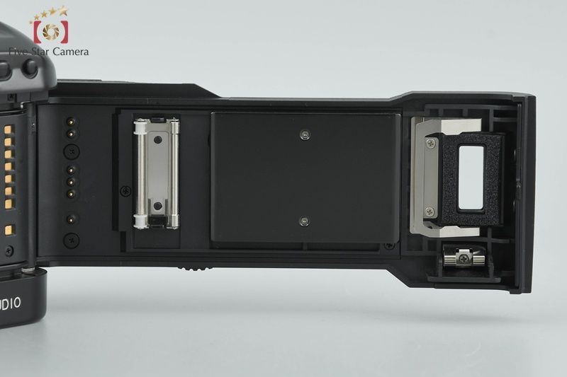 外装に使用感、薄い傷、磨耗によるテカリ、微小な塗装はがれ、三脚座の跡、前所有者の刻印が見られ、背面のラバーにひび割れがございます。