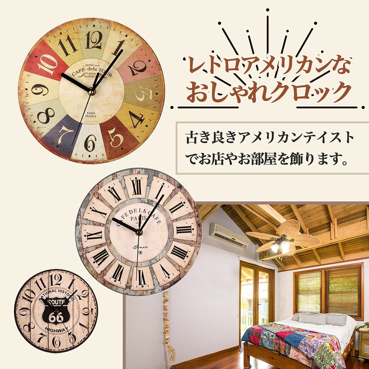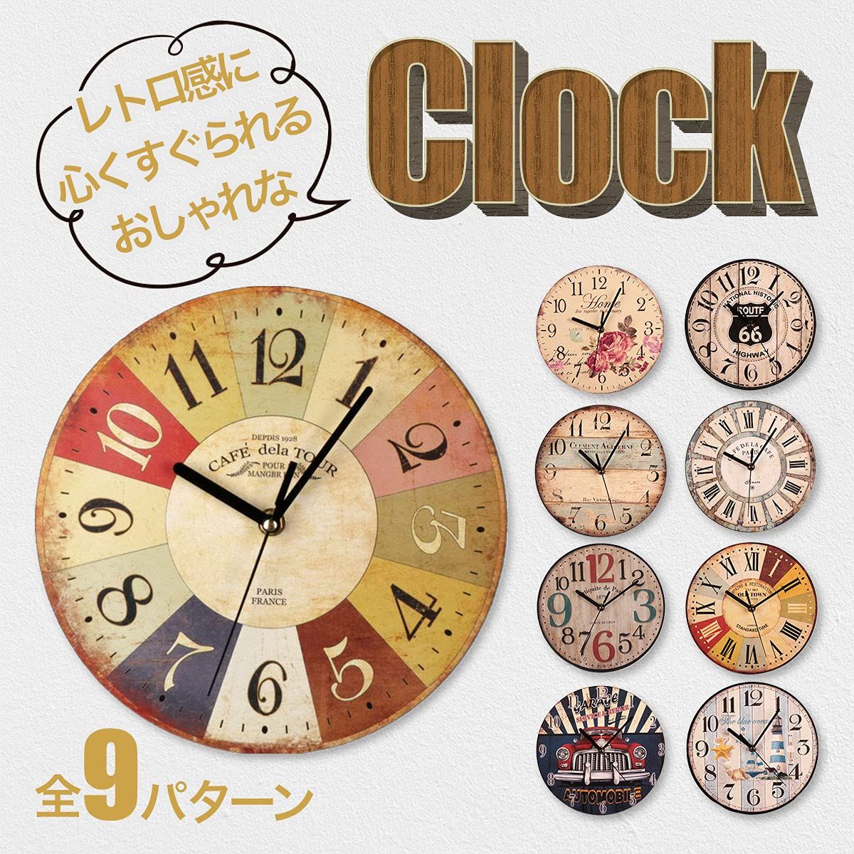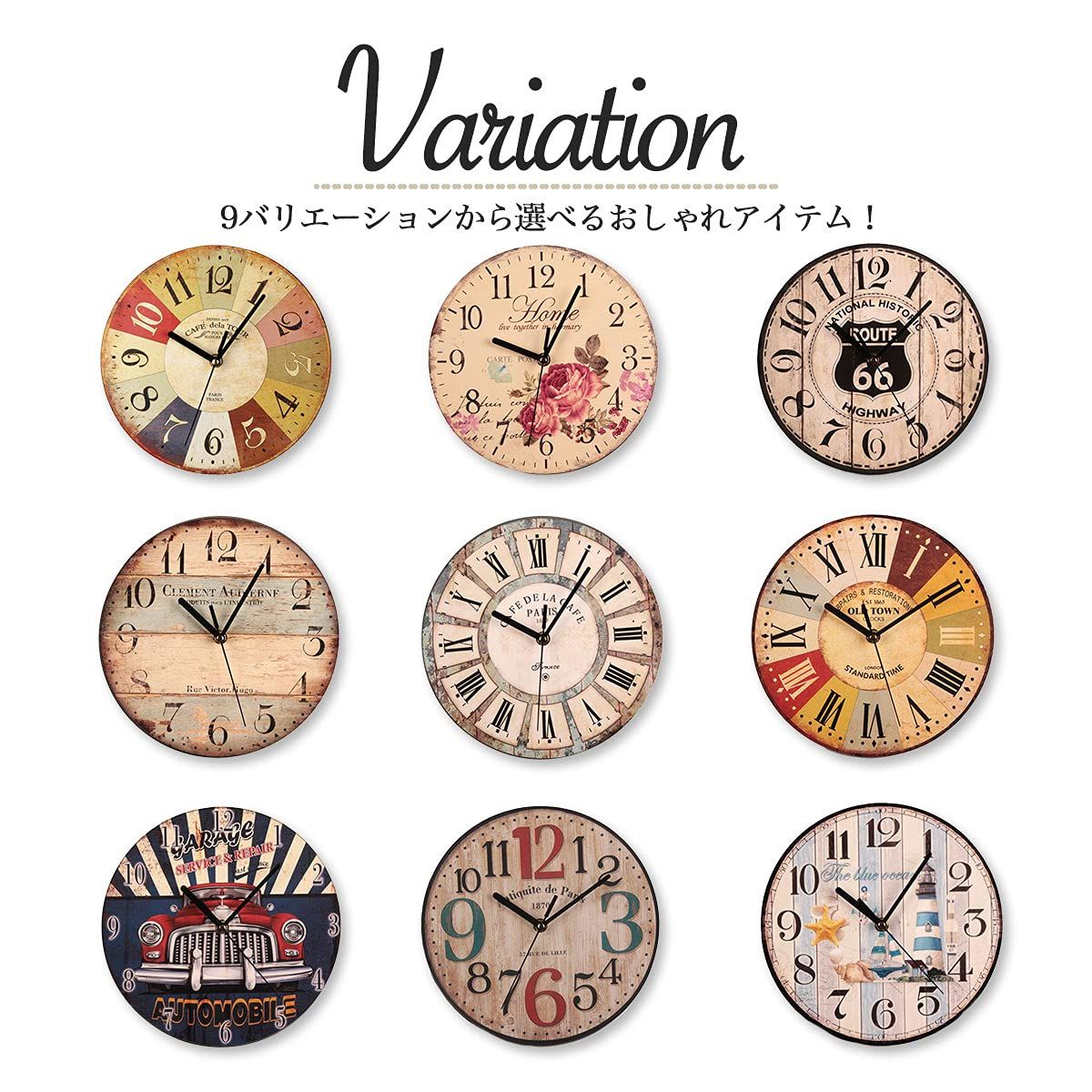 【クローブキューブ】アンティーク風 クロック オールド アメリカン 掛け時計 シャビーシック 北欧 9種類 静音 大数字 見やすい 直径23cm (クラシックカー)