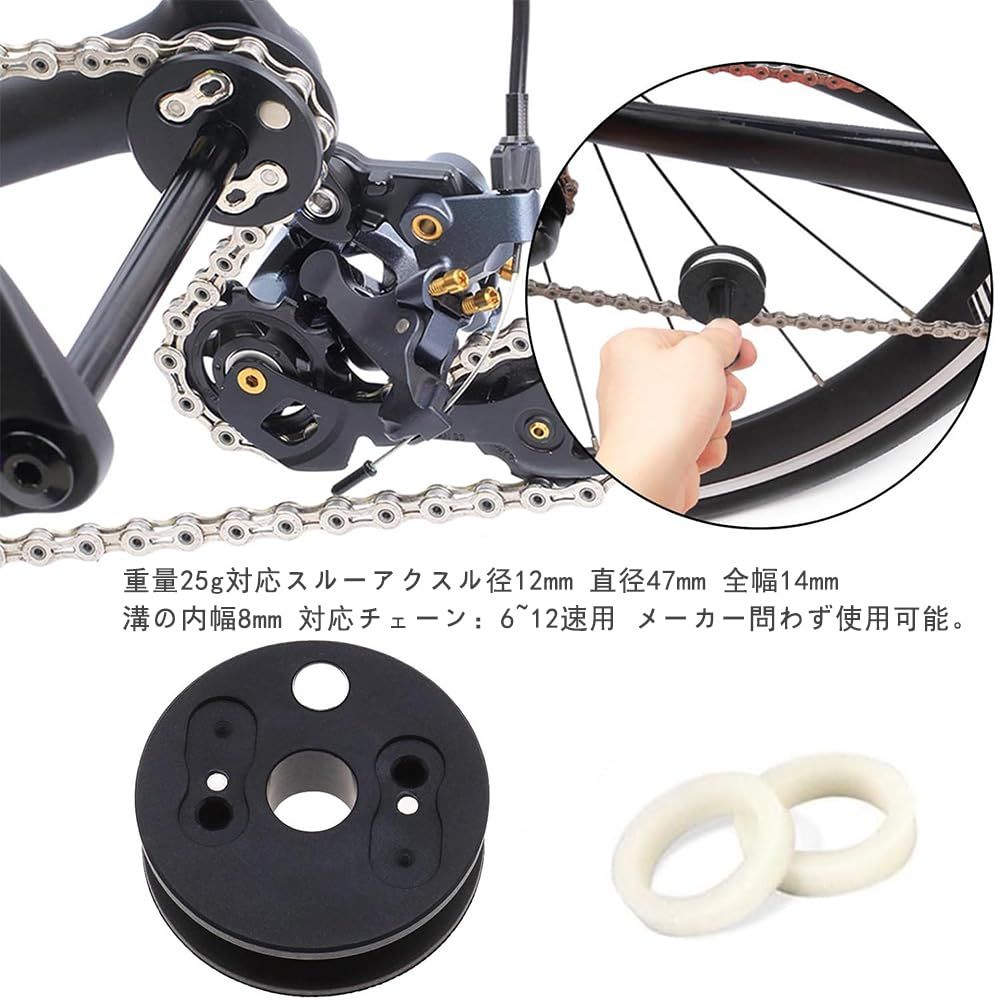 【製品仕様】対応スルーアクスル径12mm、直径47mm、全幅14mm、溝の内幅8mm;対応チェーン:6~12速用 メーカー問わず使用可能。