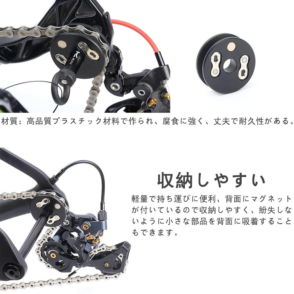 【多機能アプリケーション】これはただのチェーンクリーニングツールにとどまらず、磁石機能も備えており、修理スタンドに簡単に取り付けたり、小物を収納するのに便利です。このデザインにより、自転車のメンテナンスがより便利になり、作業がより効率的で整然となります。