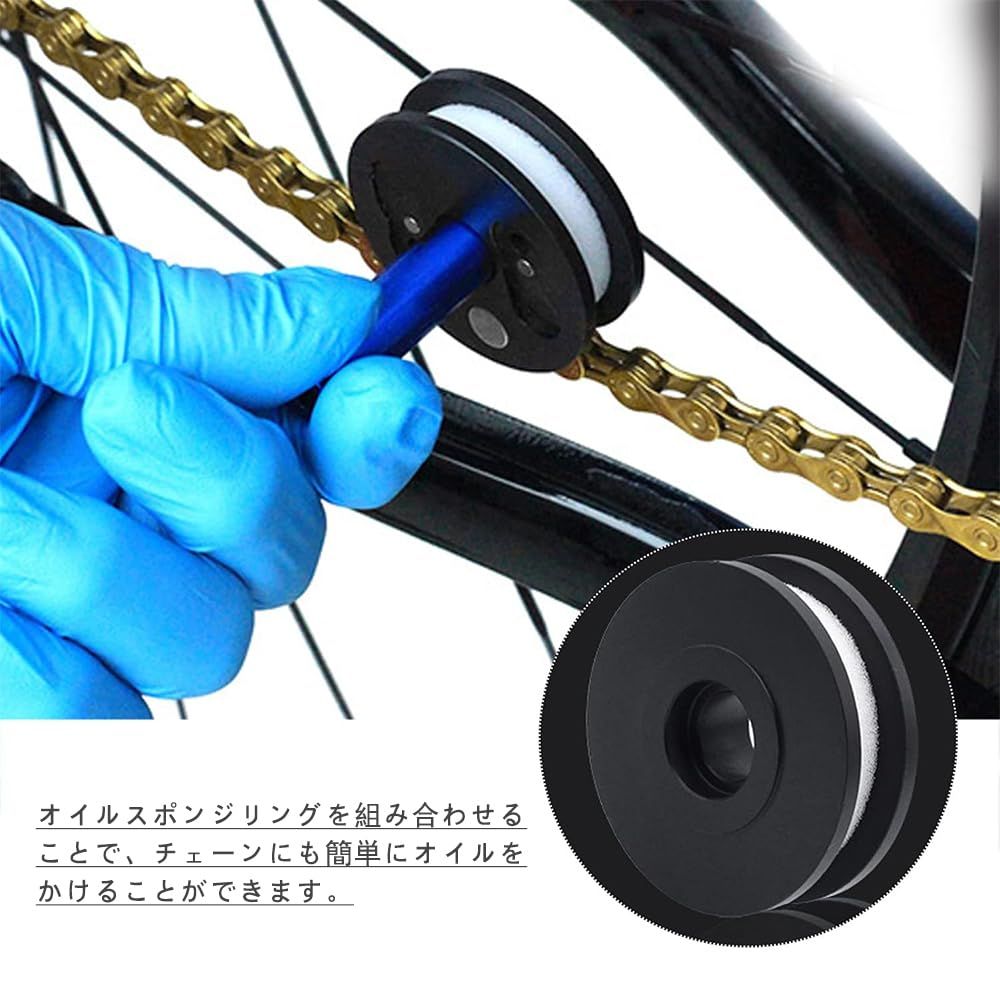 【スマート給油】製品にはチェーンにオイルを給油できるスポンジが付属しており、チェーンの内部のオイルをしっかり保ち、チェーンリング部分にも充分な潤滑を施すことで、自転車の走行がよりスムーズになります。