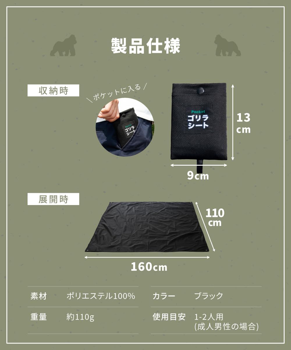 ゴリラシート レジャーシート マット シート キャンプ レジャー コンパクト 手のひら ポケット ポケットサイズ GS100-BL