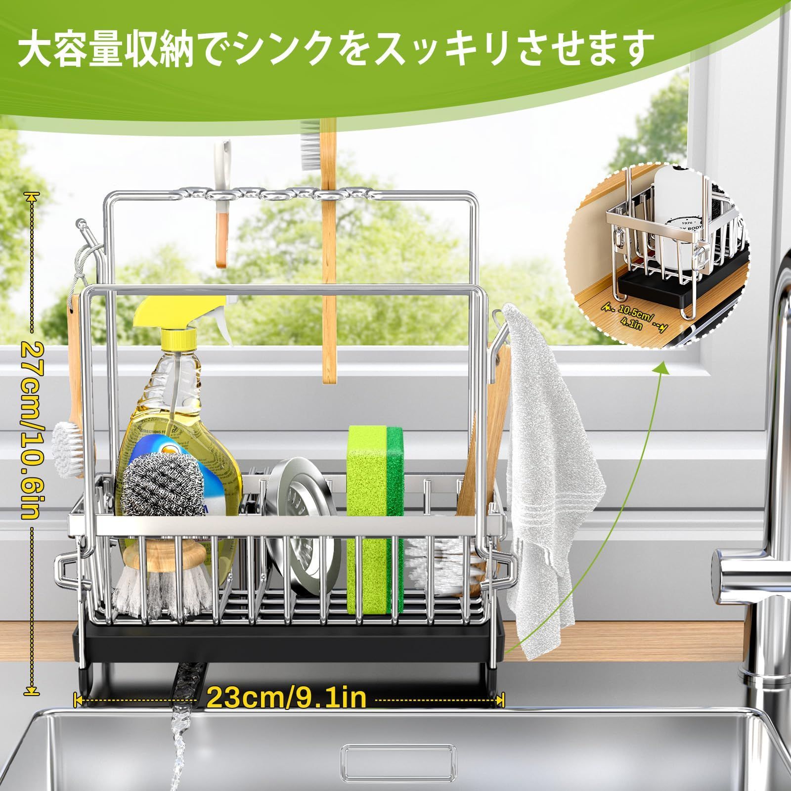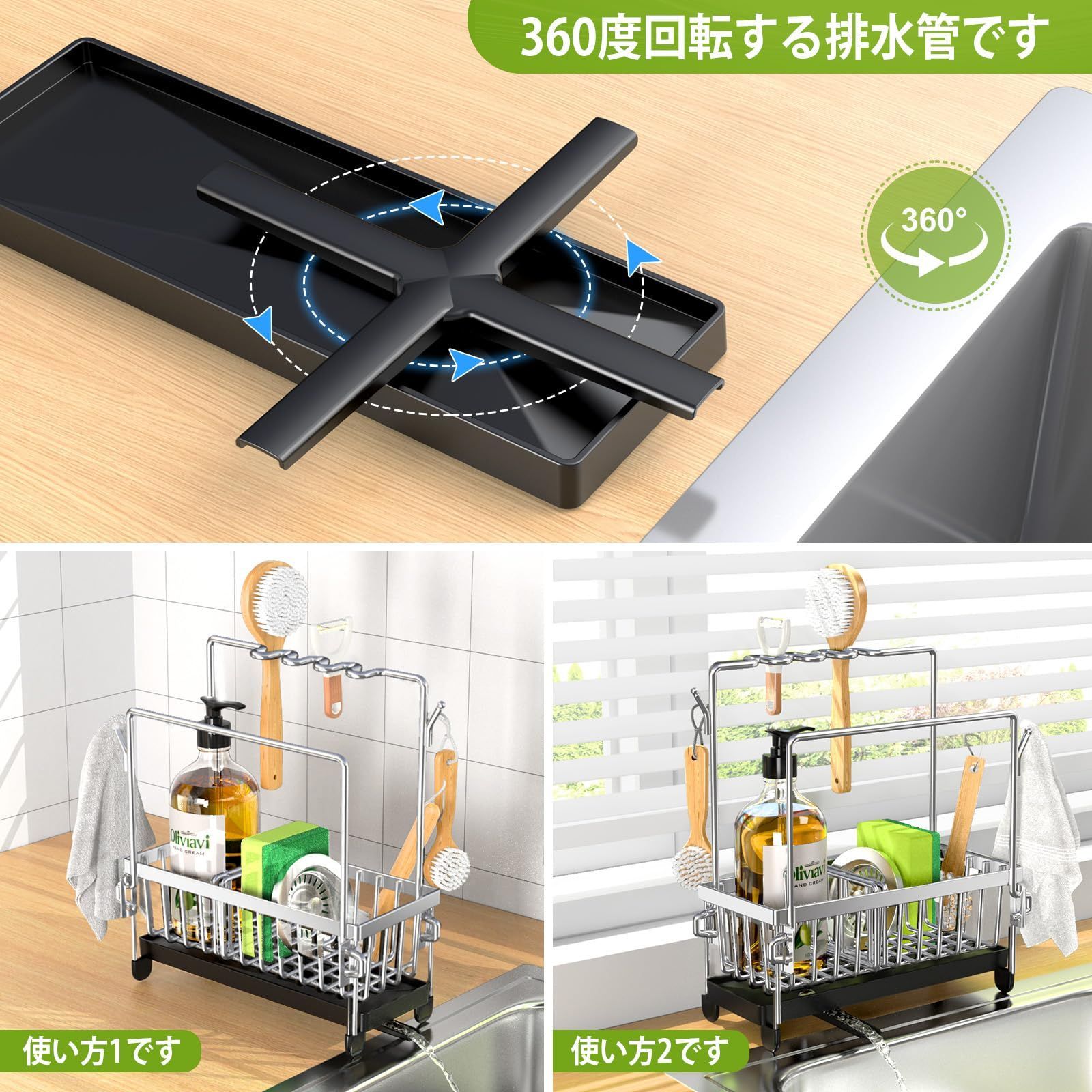 【取り外し可能なドリップトレイ】取り外し可能なドリップトレイは、あなたのカウンタートップが乾燥し、整頓された状態を維持することをします。また、水分の蓄積を防ぐ便利な排水システムを備えています。その上、ドリップトレイとシンクバスケットの間に完璧なサイズがあるので、簡単に落ちることはありません。