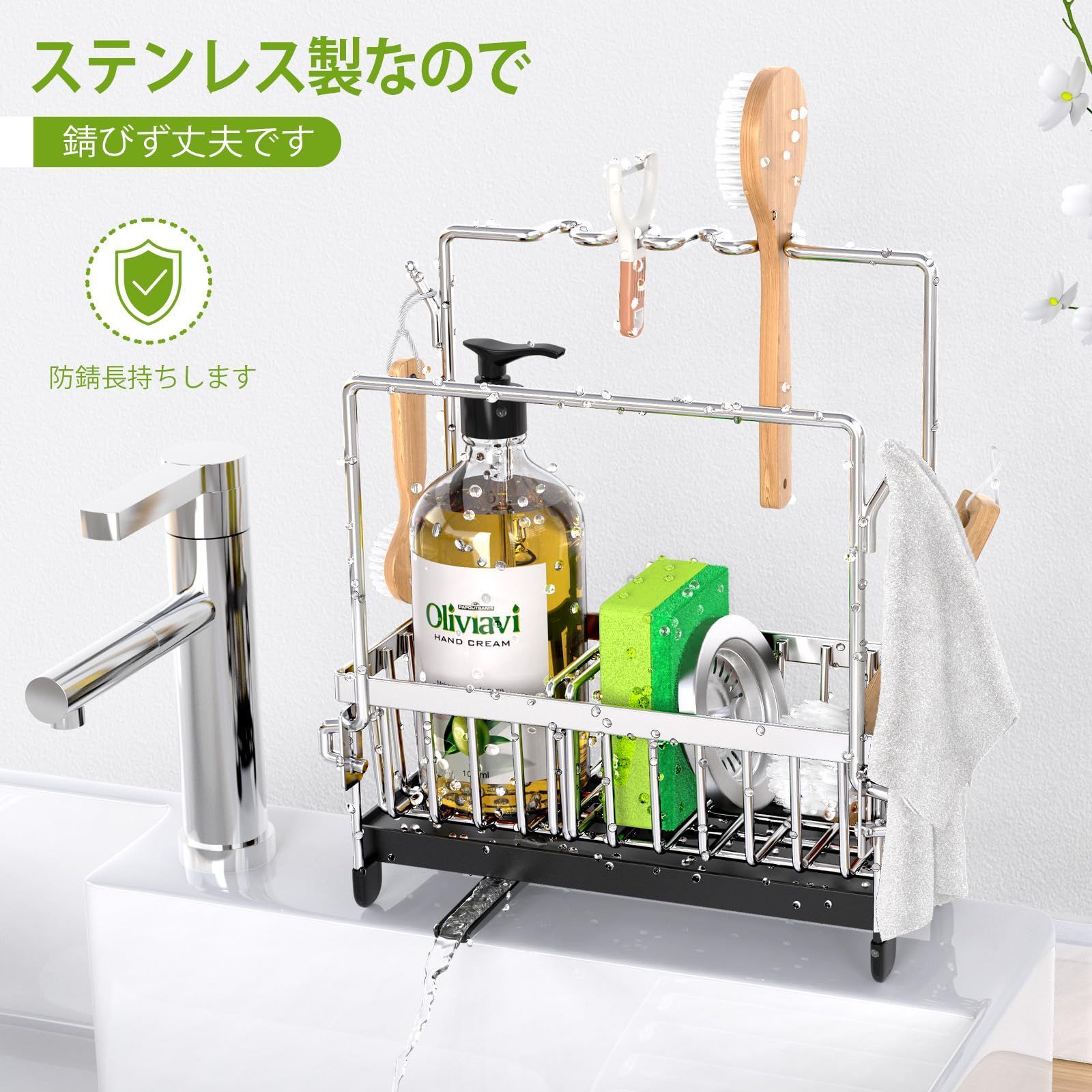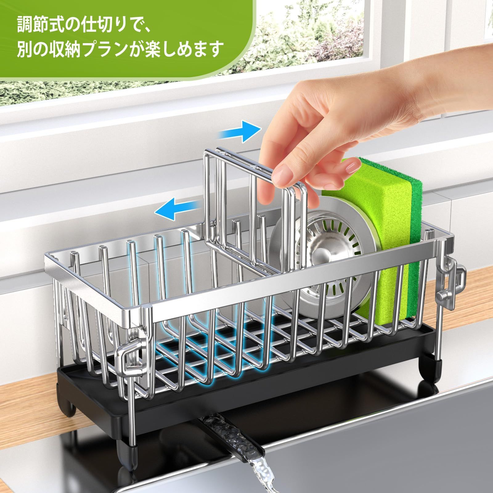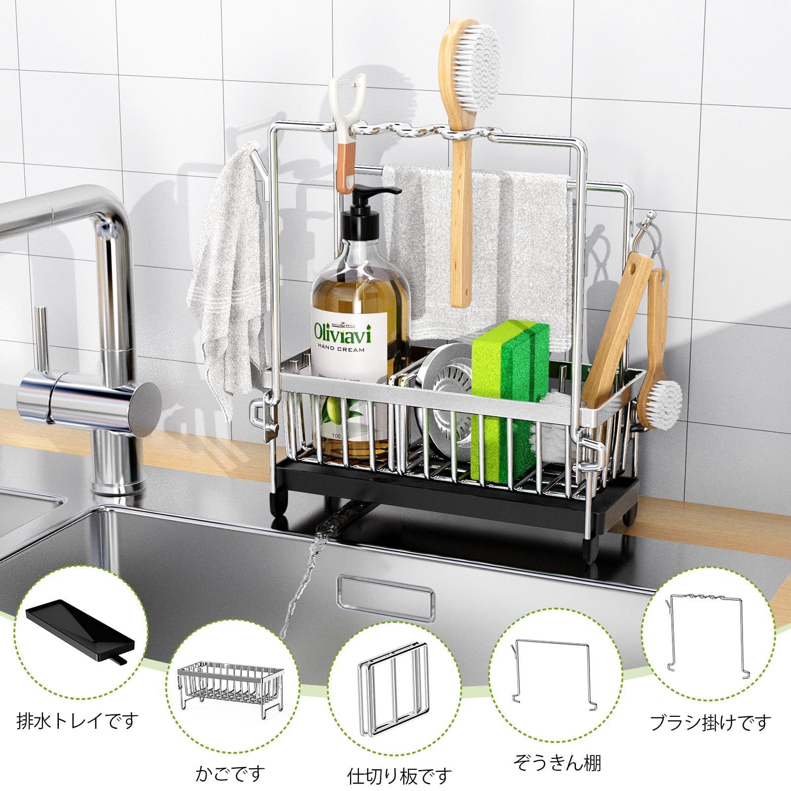 【組み立て簡単】スポンジホルダーには、2つラック、シンクバスケット、仕切り板、ドリップトレイが含まれています、組み立ても1~2分でできます。ご不明な点がございましたら、カスタマーサービスにご相談ください。