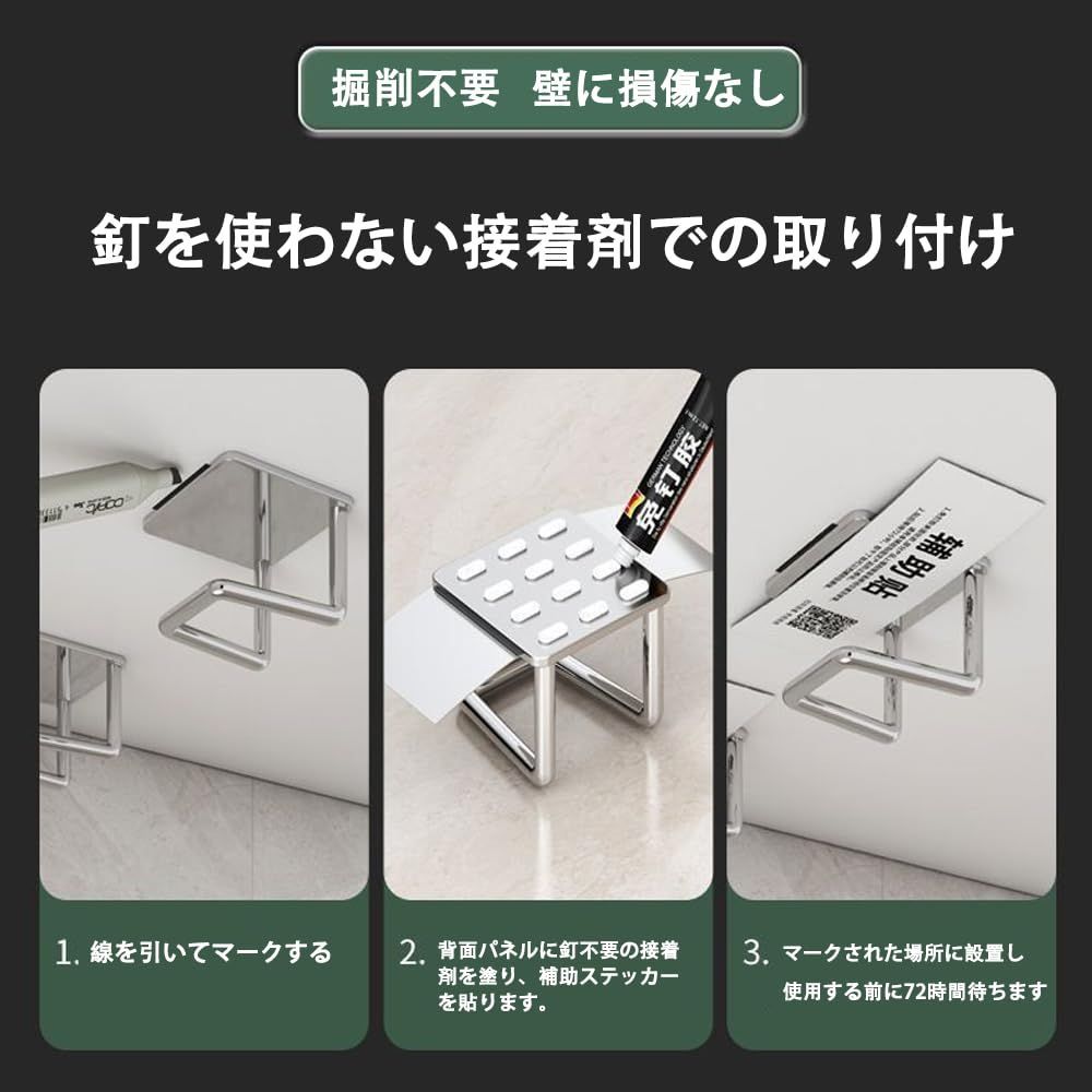 強力粘着で簡単設置:接着力の強い粘着テープで固定でき、ネジを使わず簡単に取り付け可能です。