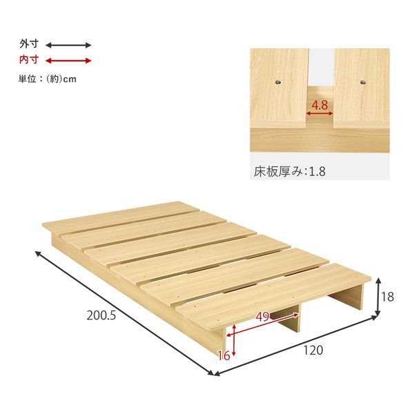 ベッド:(約)幅120×奥行200.5×高さ18cm