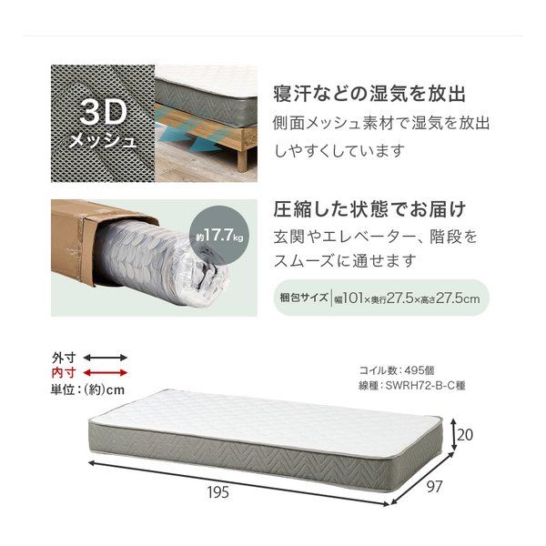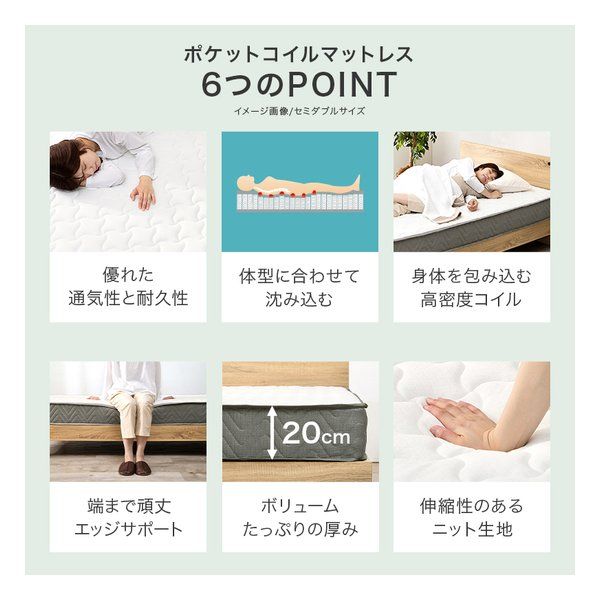 ●体型に沿うように点で支え、体圧を分散するポケットコイルマットレスセット