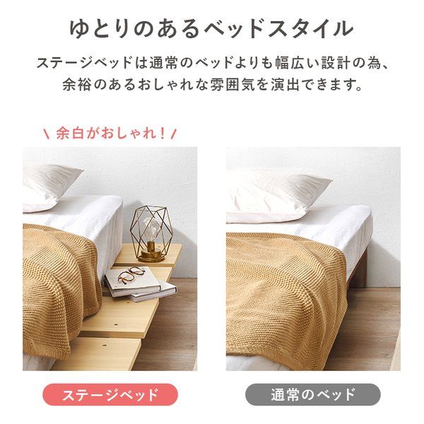 ●幅広設計なのでマットレス横に木目が見えるスペースができ、おしゃれな雰囲気を演出します