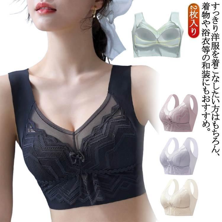 【美品・未使用新品】脇肉 設計 ノーワイヤー 補正下着 スッキリ 胸を小さく見せるブラ フルカップ レース 2枚入 着痩せブラ 胸が小さく見えるブラ 背中 補正インナーNY