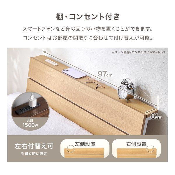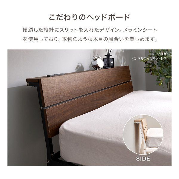 ●ヘッドボードは木目調の傾斜があるパネル仕様です