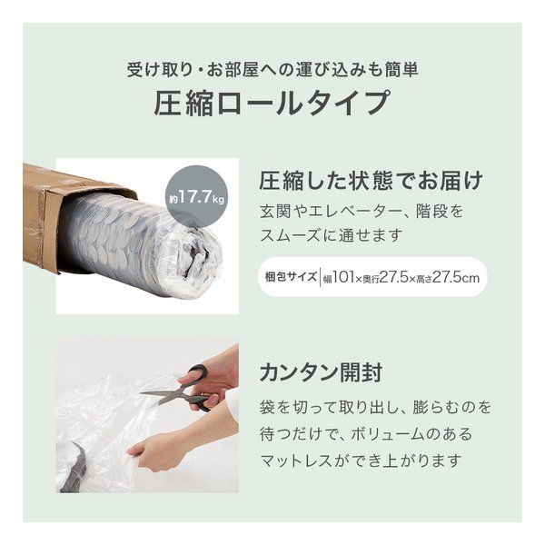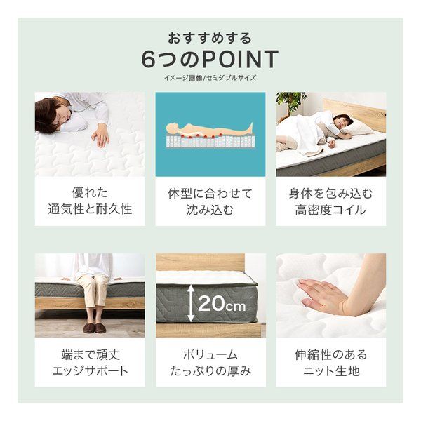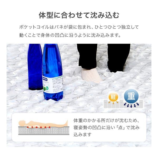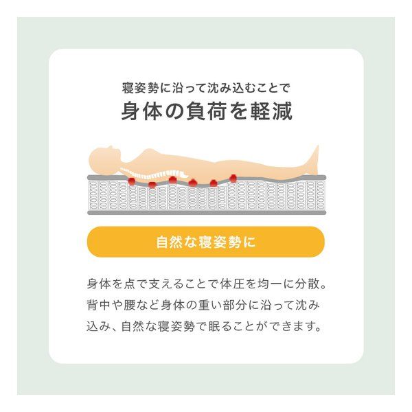 体型に沿うように点で支え、体圧を分散するポケットコイルマットレス