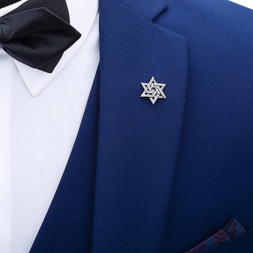 WOWTAC メンズ ピンバッジ ブローチ シンプル 六芒星 バッジ ラペルピン タックピン ピンバッチ ピンズ バタフライクラッチ