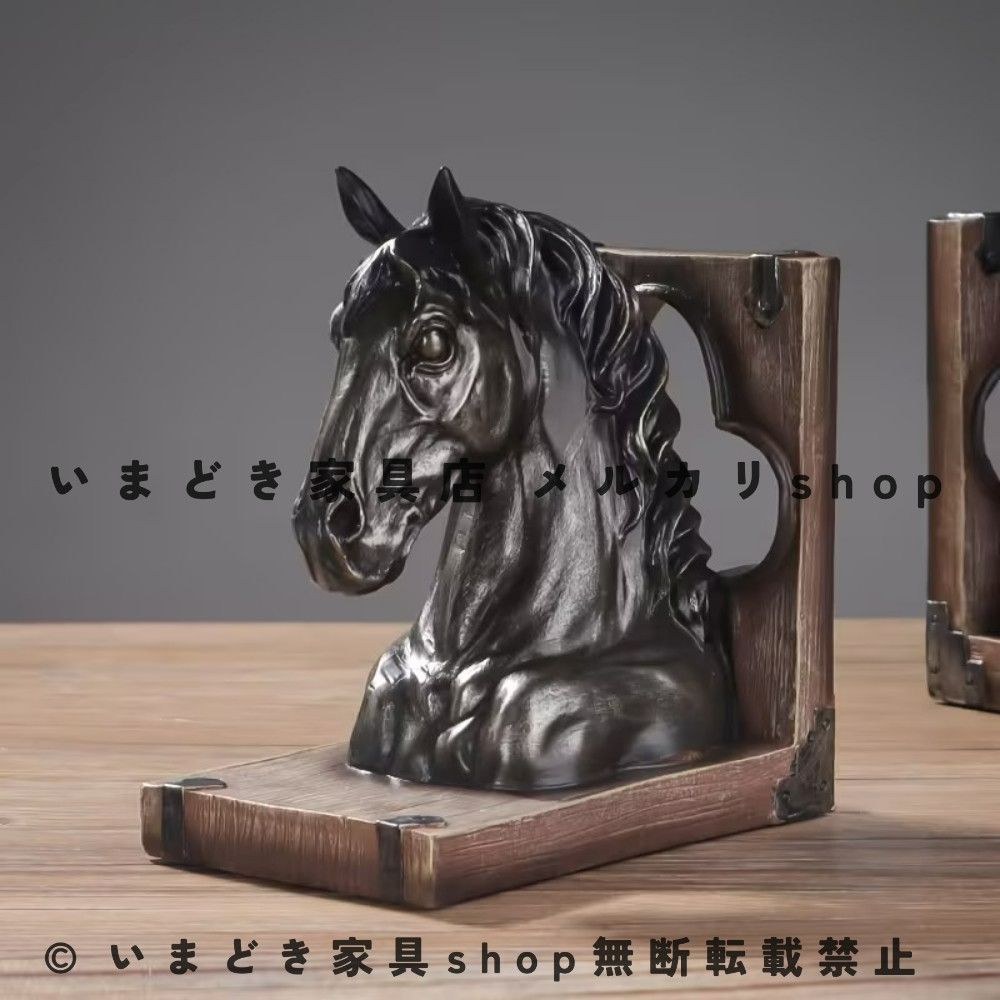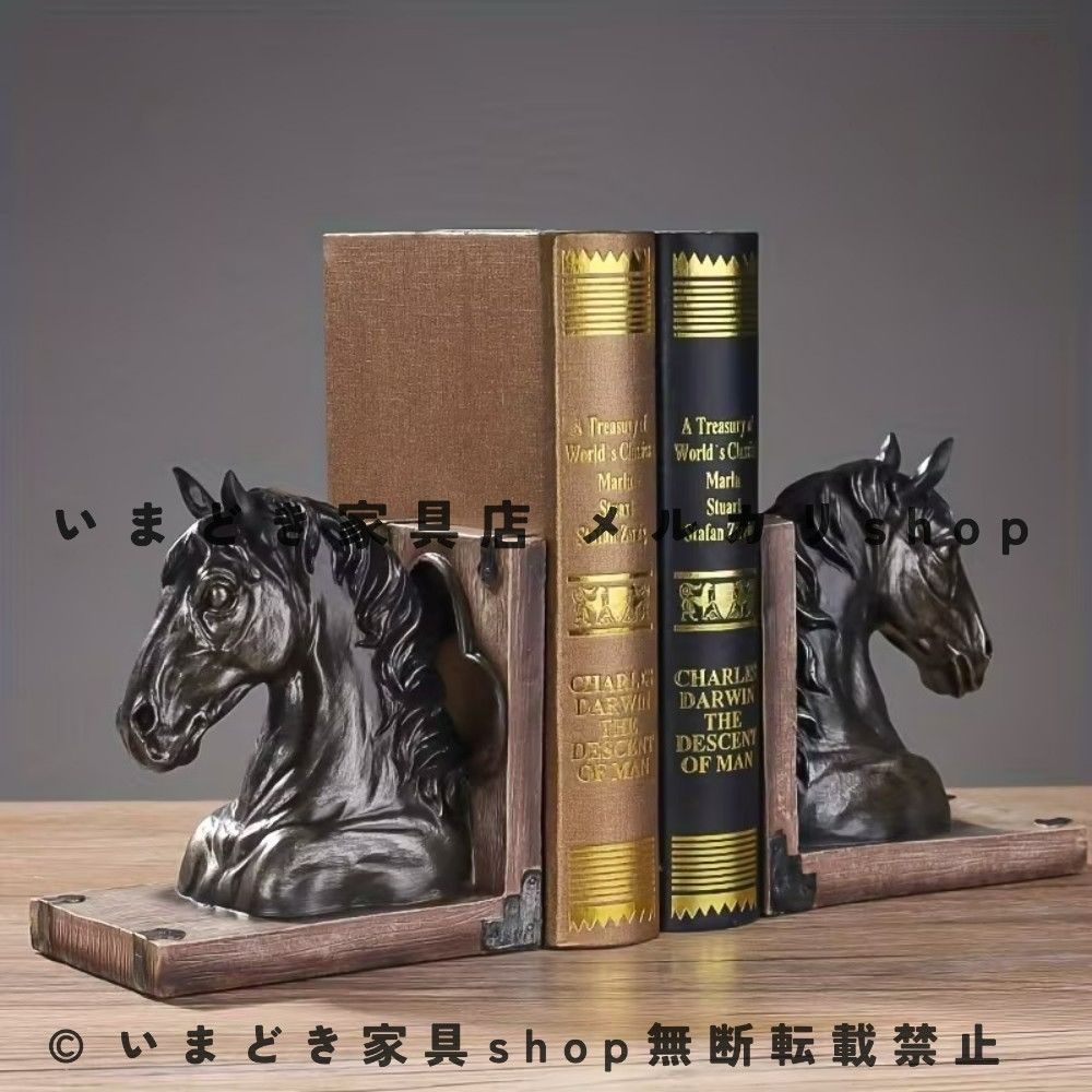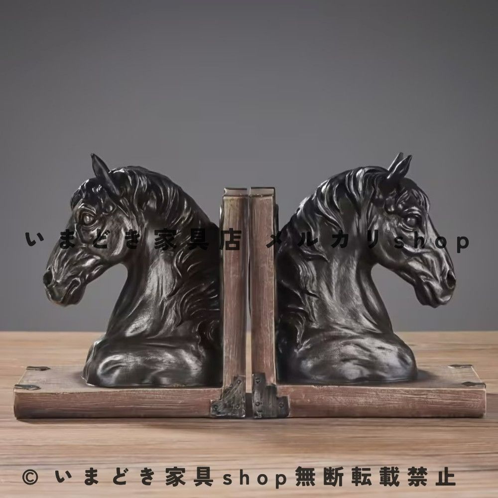 力強くも優雅な馬の姿をモチーフにしたブックエンド置物。