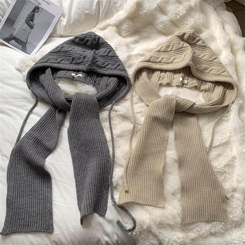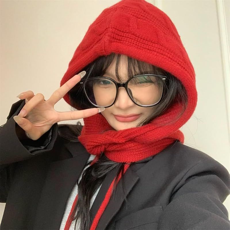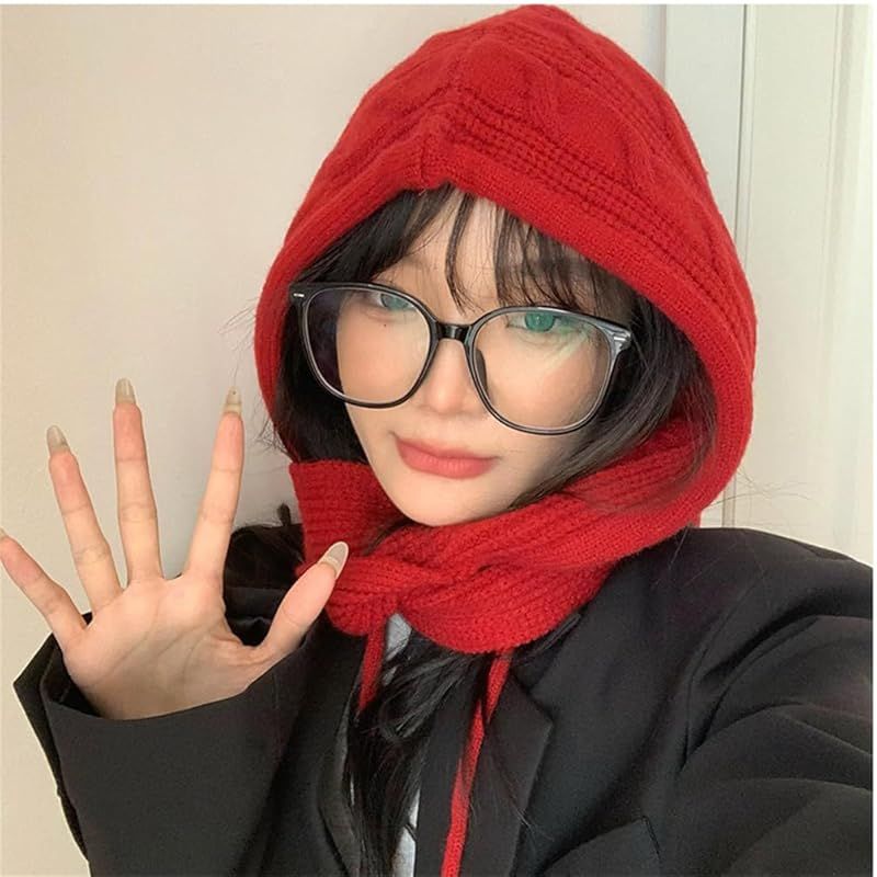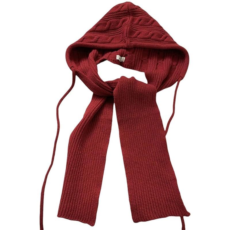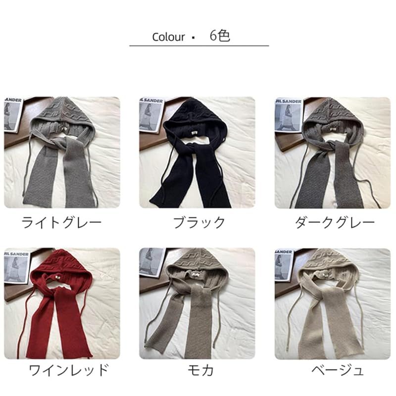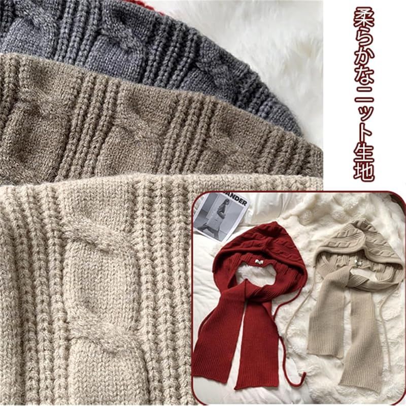 商品名:【新品】 [LINSHIN] レディース ニット 帽子 スカーフ 2 way ストール マフラー ニット帽 ネックウォーマー フード ネックカバー 可愛い あったか 防風 防寒 お洒落 ファッション コーデ 通勤 通学 秋冬 オフィス (ワインレッド,Free