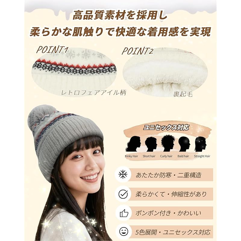 ?【ポンポン付き・かわいい】もこもこポンポンがアクセントのニット帽は、可愛らしさとトレンド感を両立。 高品質素材を採用し、柔らかな肌触りで快適な着用感を実現。 優れた保温性で冷え込む季節も暖かく、二重構造でさらなる防寒効果を発揮。秋冬の必需品です!