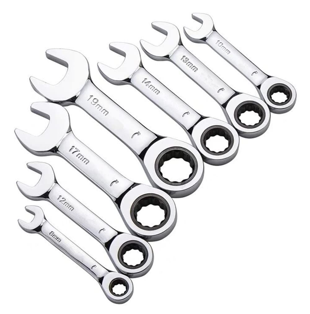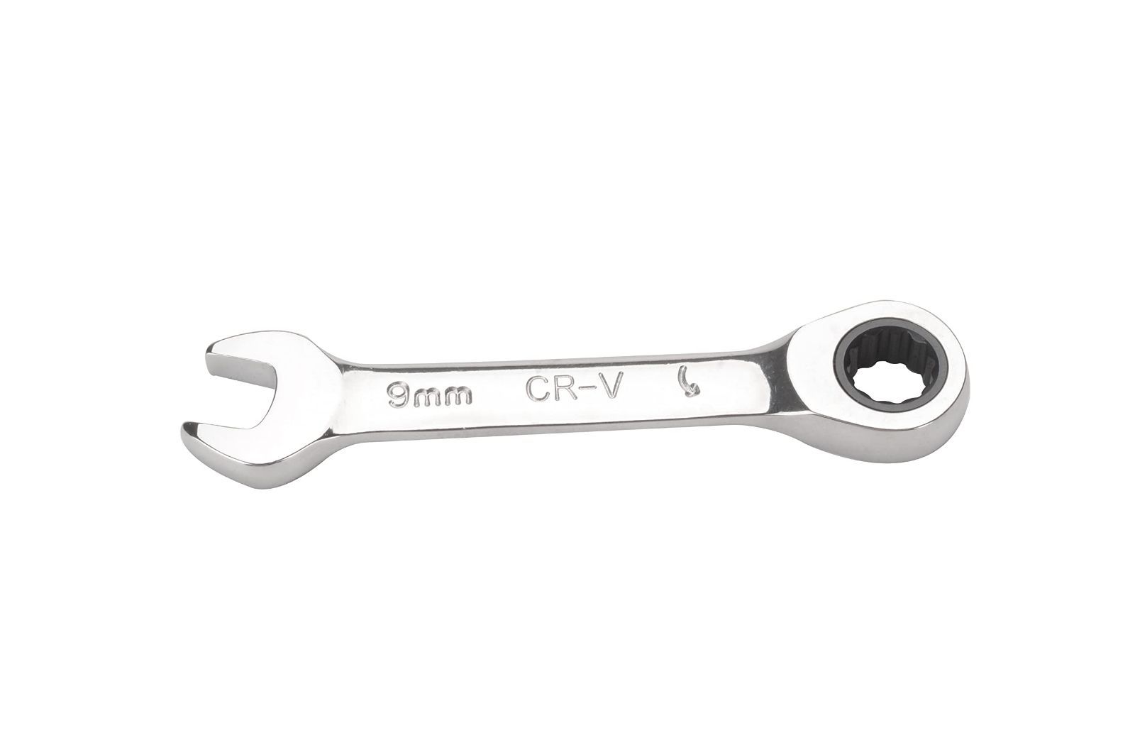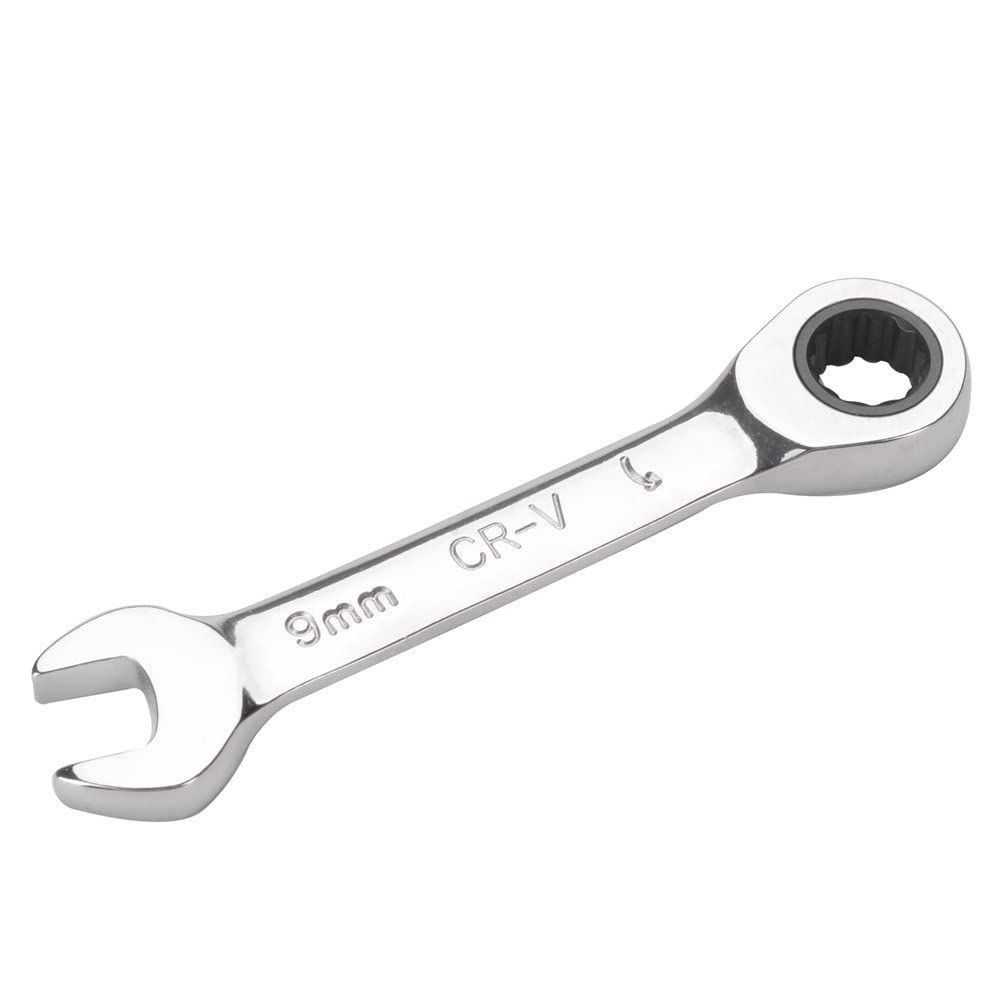 コンビネーションレンチ ラチェットレンチ 片口スパナ ショートタイプ CRV製 車メンテナンス 鏡面仕上げ (9mm)
