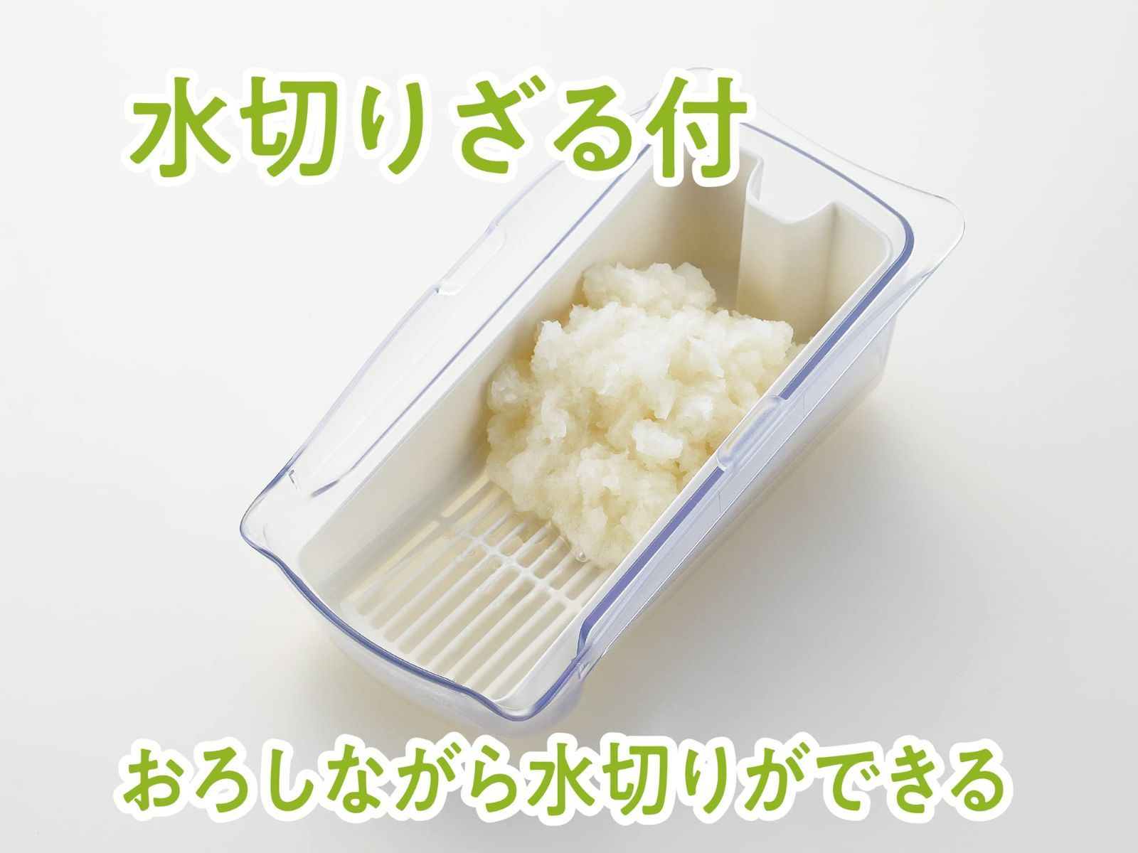 材質/本体:ポリプロピレン(耐熱温度:100℃)、容器:AS樹脂(耐熱温度:100℃/耐冷温度-20℃)、水切りざる:ポリプロピレン(耐熱温度:110℃)、刃:ステンレス鋼、すべり止め:ゴム