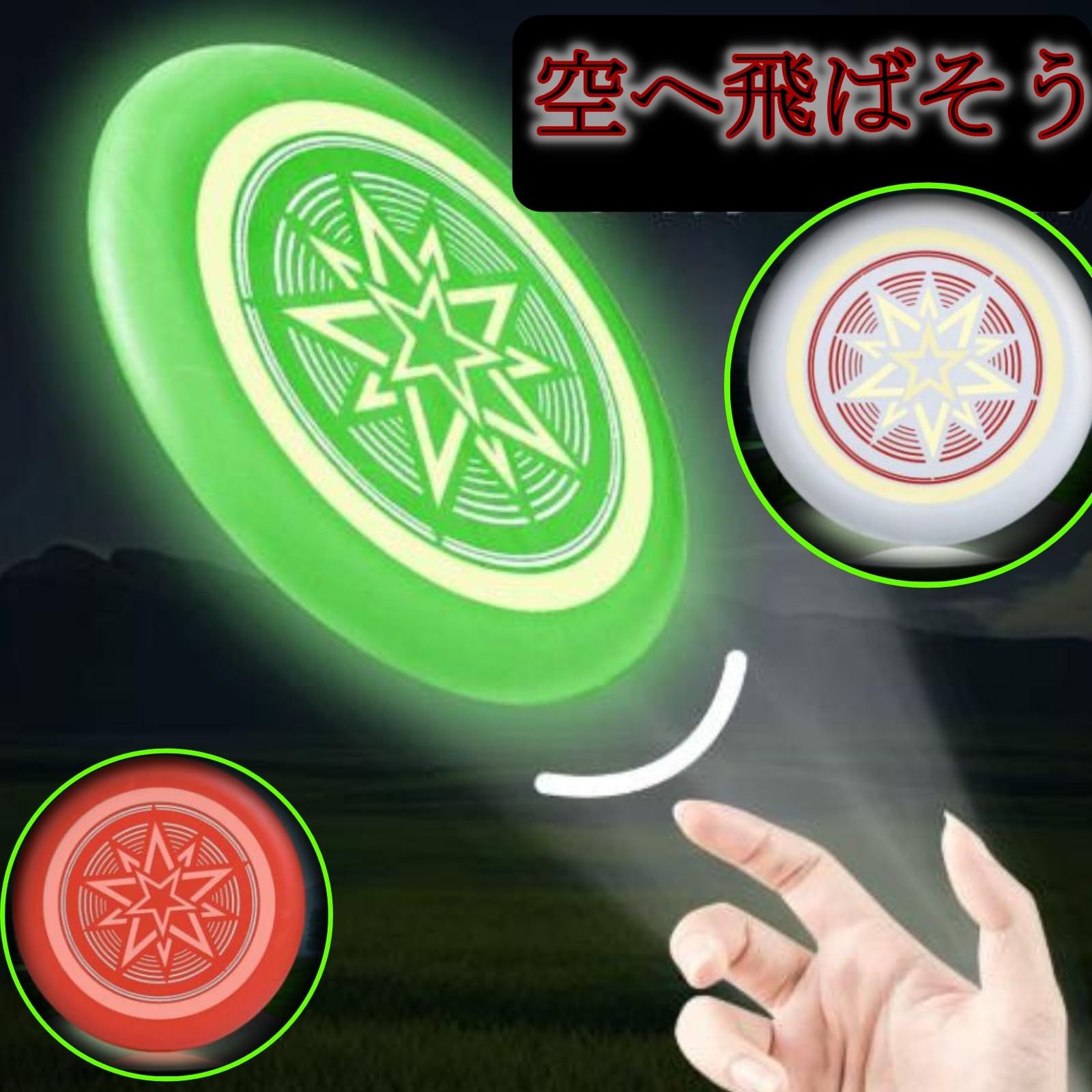 ※蓄光で光を発するので、真っ暗闇で見えるわけではありません【アウトドア】公園や砂浜で手軽に飛ばすことができます【フィットネス&エクササイズ】走って、投げて、全身を動かし、フィジカルUP
